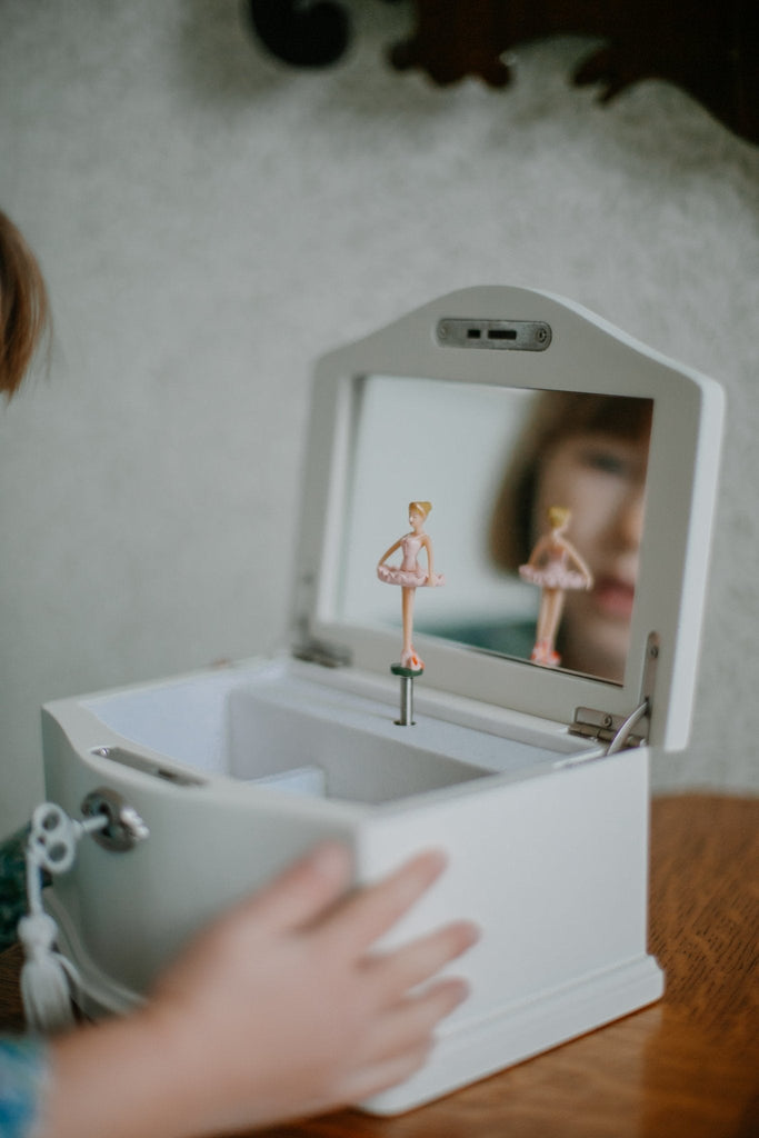 Hand-painted wooden jewelry box with wind-up musical ballerina feature. Soft velvet interior with compartments for jewelry and keepsakes. Each piece is finished with protective lacquer. Please note if you order multiple items they may arrive separately.