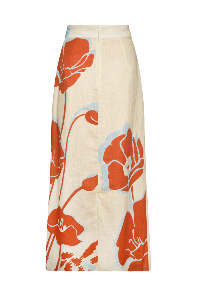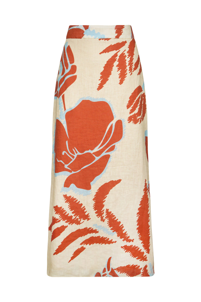 Inspired by Colombia’s magnificent tropical landscapes, Maria Fernanda Valencia built Juan de Dios to not only share that beauty, but give back to the land and its people. Engaging with local artisans, the brand’s consciously crafted swimwear and accessories arrive in unique collections that both flatter and feel amazing. The Beatrice Linen Midi Skirt in Ecru & Orange Gladiolos features a classic silhouette combined with the Ecru Orange Gladiolos print on breezy linen. Style with Lebron Top to create the ultimate look.