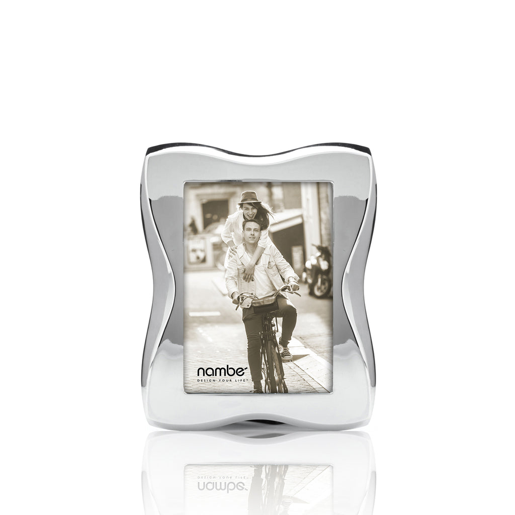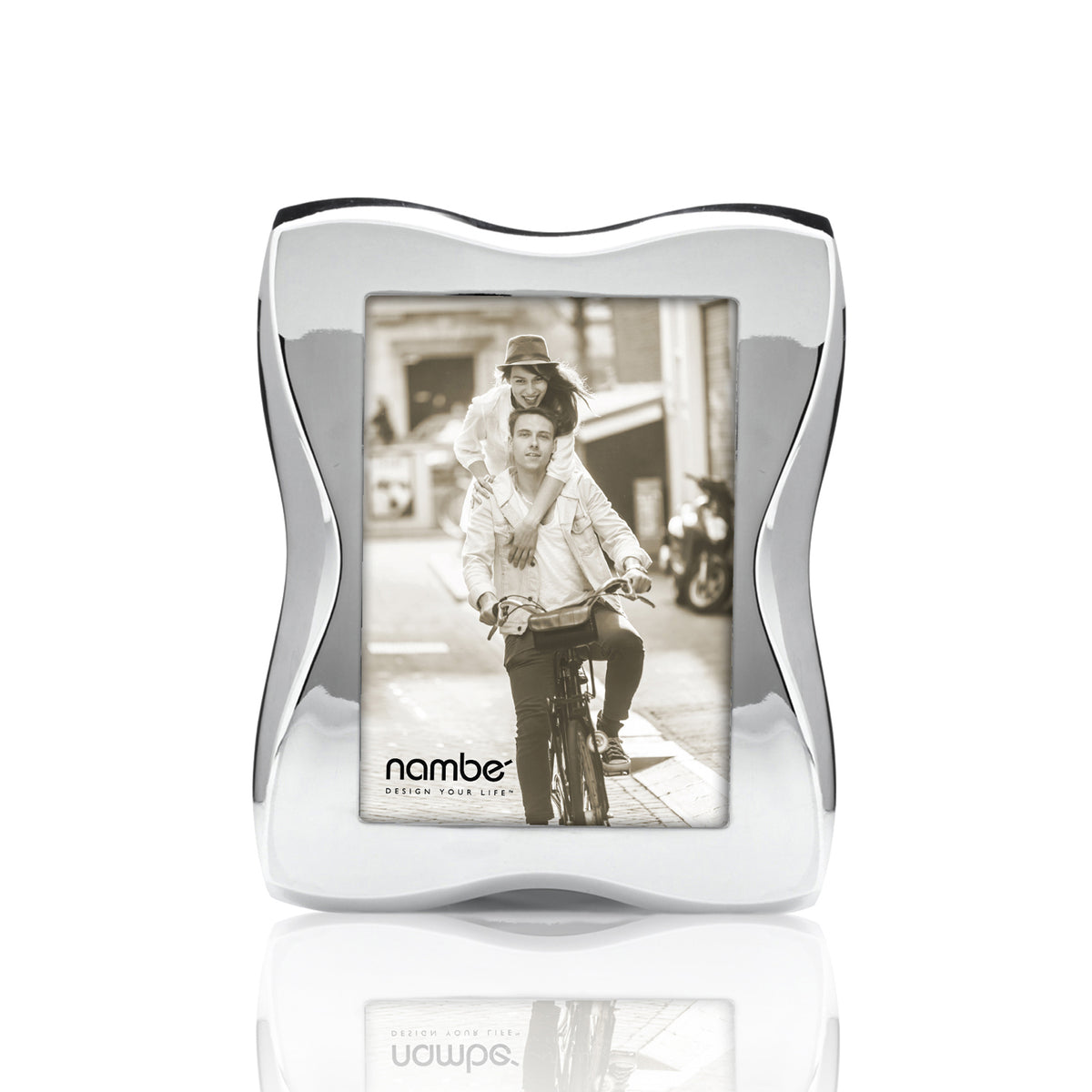 Recognized for over 60 years of award-winning design, Nambé blends timeless, refined beauty with everyday function. With pieces featured in world-renowned museums, its serveware, barware, home decor, and gifts reflect a legacy of artistry and innovation. Frame your favorite people and places in fabulous style. The artfully crafted curves of the Bella Frame bring an air of modernism to any surface, while its sleek bends draw the gaze inward to the photo, where it belongs. Ideal on a fireplace mantel or sideboard, this frame makes a thoughtful holiday or wedding gift.