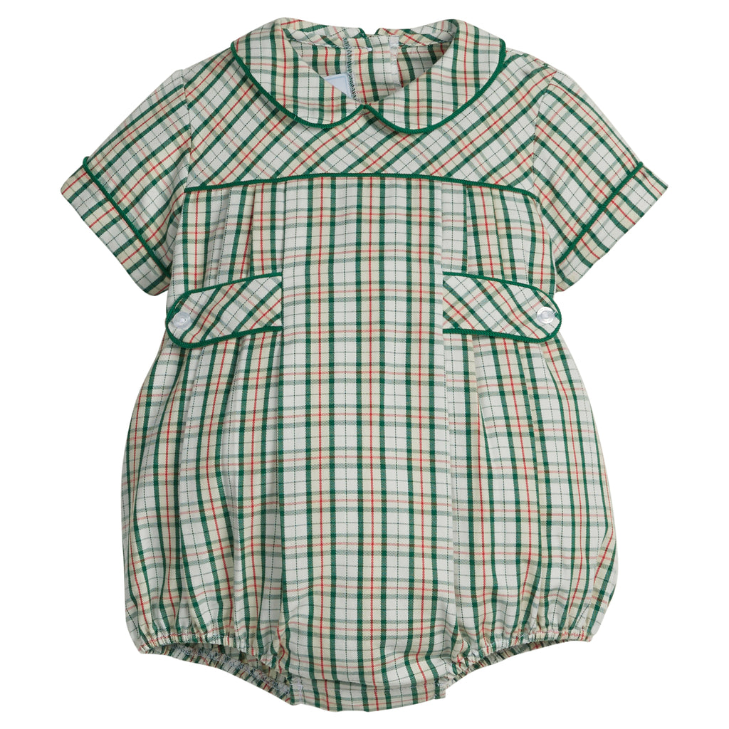 Shannon Latham founded Little English in 2004 with the belief that children should always be well-dressed. Employing hand-smocking, hand-embroidery, and the very best fabrics, Shannon and her daughter design timeless pieces that will be worn for generations to come. Deck the halls in the Mistletoe Tartan Collection, a festive cream-based green tartan with a pop of red. The Bennett Bubble in Mistletoe Tartan is a new style featuring a pleated chest, button tabs with Evergreen Corduroy piping, and a signature Peter Pan collar. For cooler days, layer with the Essential Cardigan in Red. From family photos to holiday parties, this festive bubble is designed for every seasonal celebration.