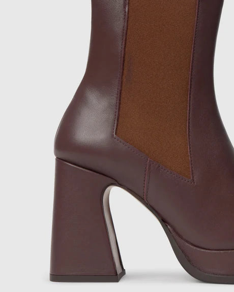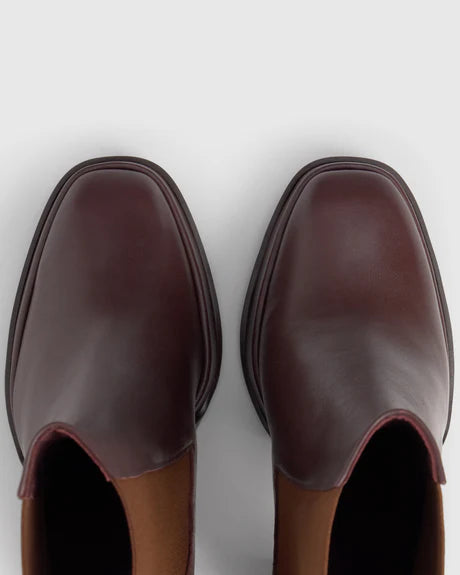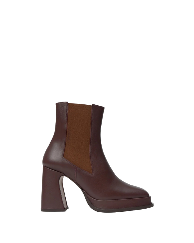 Founded in 1927, Castañer has elevated the espadrille into a sophisticated symbol of timeless design. With a commitment to craftsmanship, tradition, and natural materials, the brand continues to blend heritage with innovation, earning global recognition while staying true to its authentic roots. The Bimba in Bordeaux redefines the ankle boot with supple nappa leather, a tonal elastic closure, and a bold 4" geometric heel covered to match. Finished with a cushioned insole, it brings sculptural elegance and modern sophistication to any look.