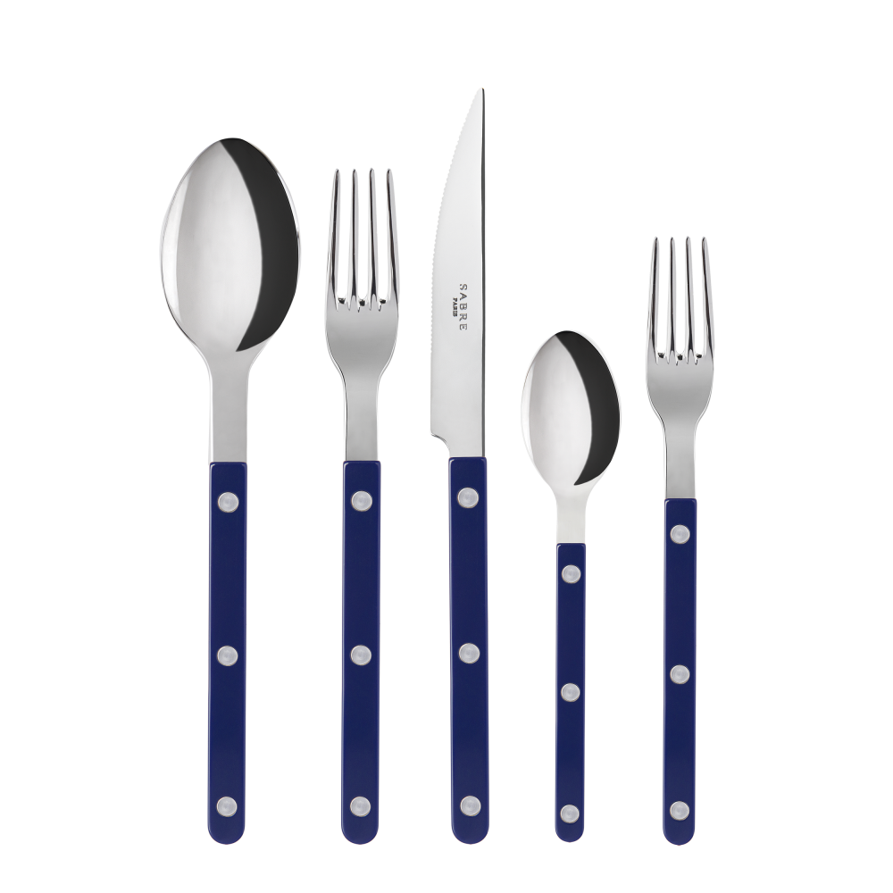 Sabre considers the table to be the largest social network in the world—and for good reason. The best place to connect with friends and family is over a delectable meal using exceptional flatware. Inspired by the chicest cafes and restaurants, the Bistro collection combines ease and functionality with the utmost style in each of its kitchen and table items. The Bistrot Place Setting in Navy Blue, Set of 5 is composed of the basic, yet beautiful pieces of cutlery for all your daily meals or special occasions: a soup spoon, a dinner fork, a dinner knife, a teaspoon and a salad fork, simply perfect for enjoying a dessert or starter.