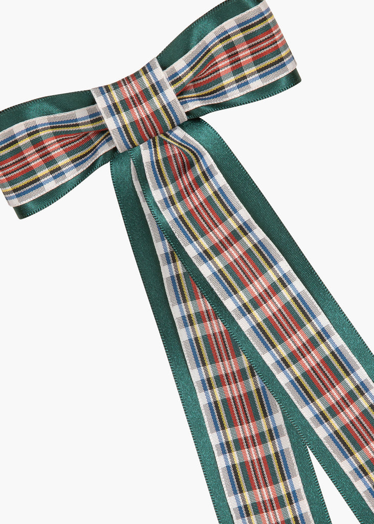 “Everything has a story to tell,” says Jennifer Behr, the founder of her namesake luxury hair accessory brand that has blossomed into one of New York City’s foremost ateliers for jewelry, as well as bridal. In every crystal, pearl, and ribbon, you’ll find the utmost quality and a sense of romance, as each piece reveals a modern interpretation of centuries-old regalia. Conjuring the undeniably jovial vision of well-wrapped gifts, the Blaire Bow Barrette is a festive way to complete your look. Each bow is crafted by hand using vintage tartan ribbon, produced in very limited quantities—making each one all the more special. It fastens with an automatic French barrette closure, allowing for versatility and functionality.