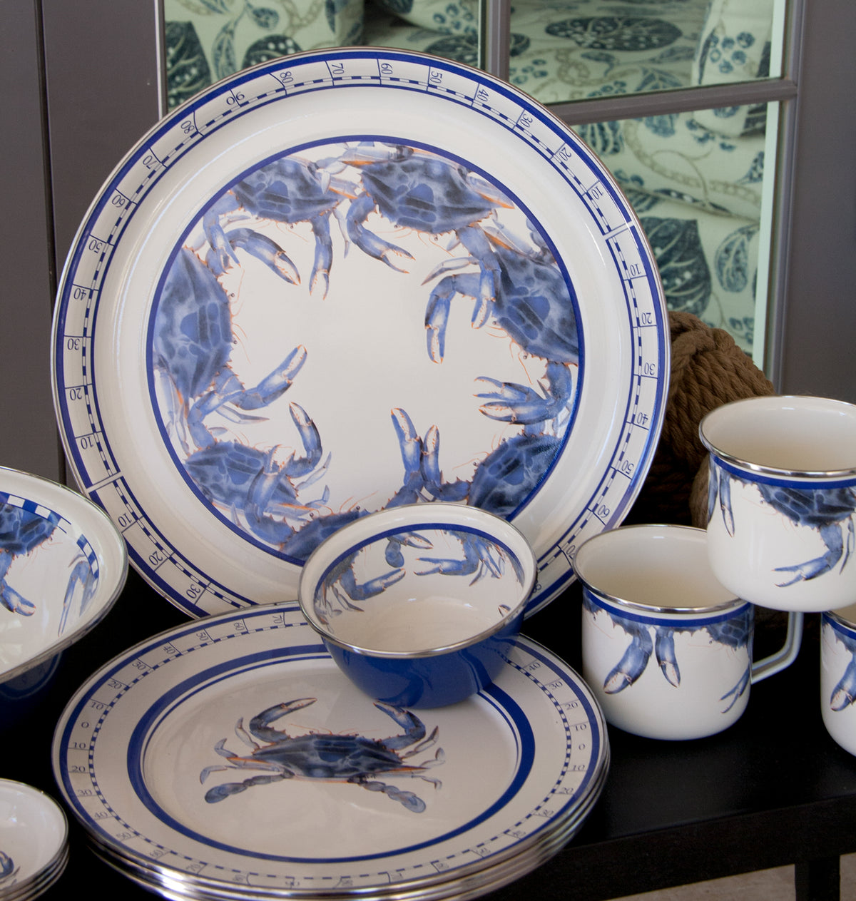 Founder Peggy Hedgpeth created Golden Rabbit to make everyday entertaining feel effortless. With functionality, safety, and durability at the forefront, the brand’s distinctive designs—from traditional enamelware to kid-friendly sets—set it apart in kitchens and dining rooms the world over. Coated porcelain enamel and trimmed with stainless steel to prevent chipping, the Large Tray in Blue Crab adds a dash of maritime style and sophistication to your family style service of meats off the grill, fresh veggies, salads, or any of your favorite larger items.