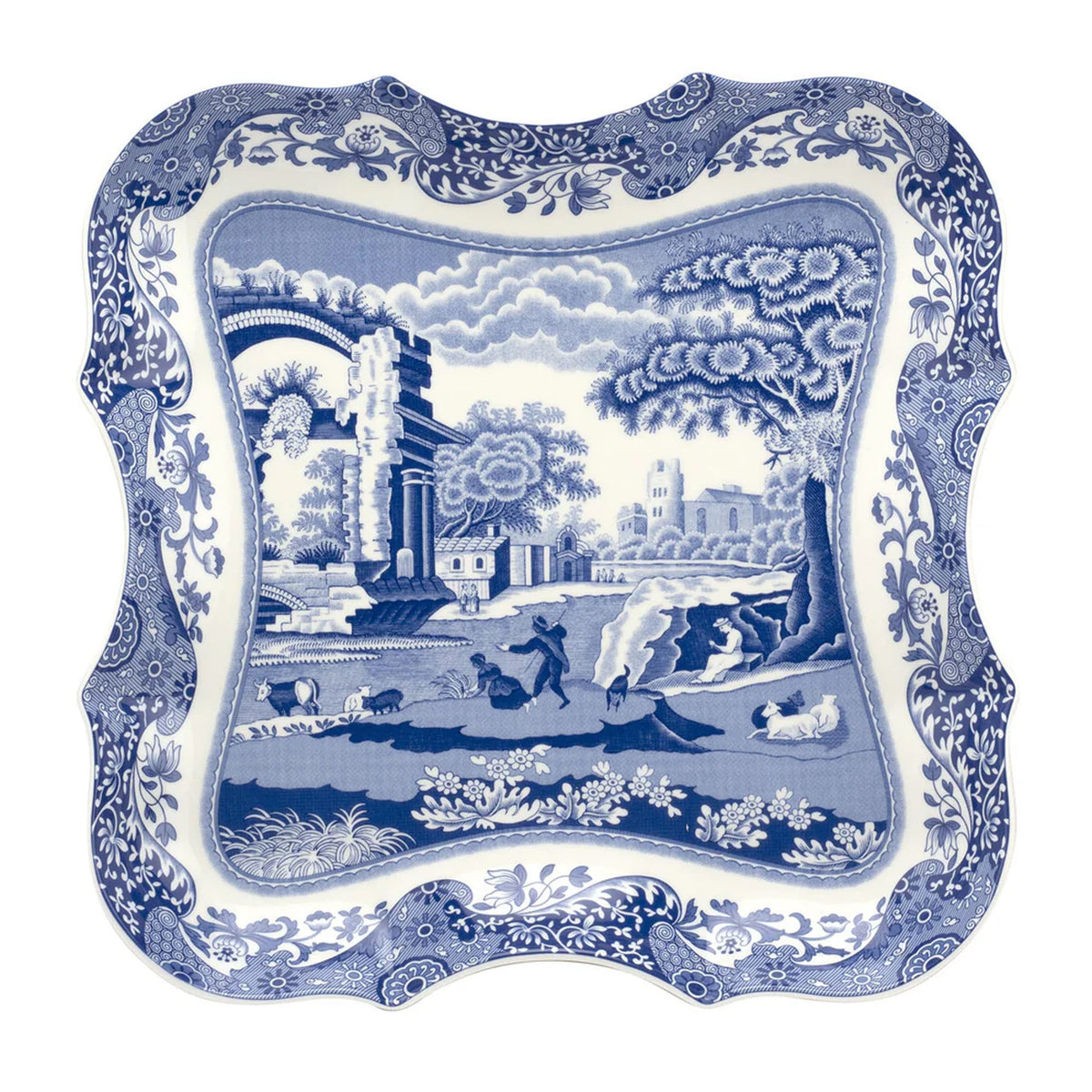 Founded by Josiah Spode in 1770, Spode has been producing the finest ceramics and celebrated designs in Stoke-on-Trent, England for over 250 years. The Blue Italian collection, introduced in 1816, is renowned for its exquisite blue-and-white motif, framed by an 18th-century Imari Oriental border. The 14″ Devonia Tray brings timeless sophistication to entertaining, with a gently scalloped edge and generous surface for serving hors d’oeuvres, desserts, or displaying cherished pieces.