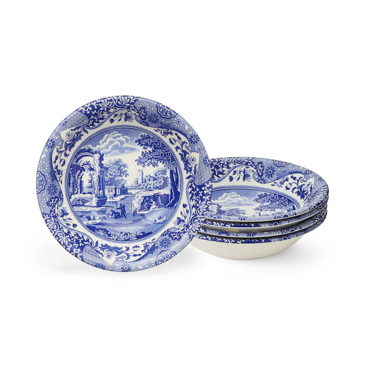 Founded by Josiah Spode in 1770, Spode has been producing the finest ceramics and celebrated designs in Stoke-on-Trent, England for over 250 years. The Blue Italian collection, introduced in 1816, is renowned for its intricate Imari Oriental border and romantic countryside scene. These Ascot Cereal Bowls, offered as a set of four, feature gently scalloped edges that add a graceful touch to the iconic blue-and-white design. Perfect for cereal, soups, or desserts, they bring timeless charm to everyday dining.
