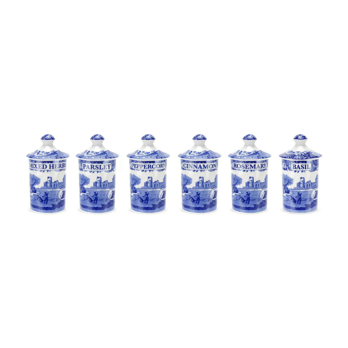 Founded by Josiah Spode in 1770, Spode has been producing the finest ceramics and celebrated designs in Stoke-on-Trent, England for over 250 years. The Blue Italian collection, introduced in 1816, is beloved for its elegant Imari Oriental border and pastoral scene inspired by the Italian countryside. This set of six Blue Italian Spice Jars brings timeless style to kitchen storage. Each jar is adorned with the iconic blue-and-white design and labeled for everyday herbs and spices, blending beauty with practicality on any countertop or shelf.