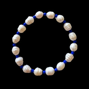 Blue beads and pearls.