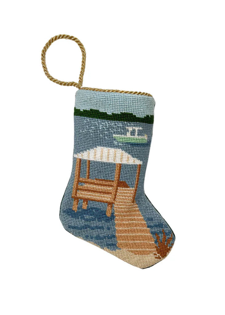 Let your holidays set sail — the Boat on the Bay Bauble Stocking is a hand-stitched needlepoint treasure designed for those who find calm on the water. Whether for coastal dreamers, devoted boaters, or anyone who delights in nautical nostalgia, this heirloom keepsake brings breezy charm to the holiday mantel.