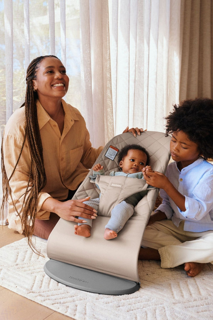 Rooted in Swedish design and a family-first ethos, BabyBjörn crafts intuitive, durable essentials that nurture the bond between parent and child while celebrating the joy of early moments. The Bouncer Bliss in Classic Quilt Sand Gray is a thoughtfully designed baby seat that combines soothing motion with ergonomic comfort. Its natural rocking movement, powered entirely by your baby’s own motion, helps develop balance and motor skills, while the soft quilted fabric cradles your little one in gentle support from newborn to toddler years.