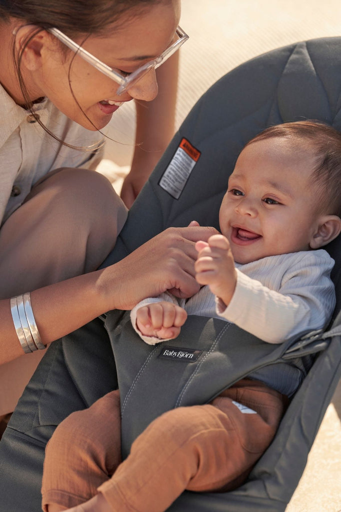 Rooted in Swedish design and a family-first ethos, BabyBjörn crafts intuitive, durable essentials that nurture the bond between parent and child while celebrating the joy of early moments. The Bouncer Bliss in Petal Quilt Anthracite is a thoughtfully designed baby seat that combines soothing motion with ergonomic comfort. Its natural rocking movement, powered entirely by your baby’s own motion, helps develop balance and motor skills, while the soft quilted fabric cradles your little one in gentle support from newborn to toddler years.