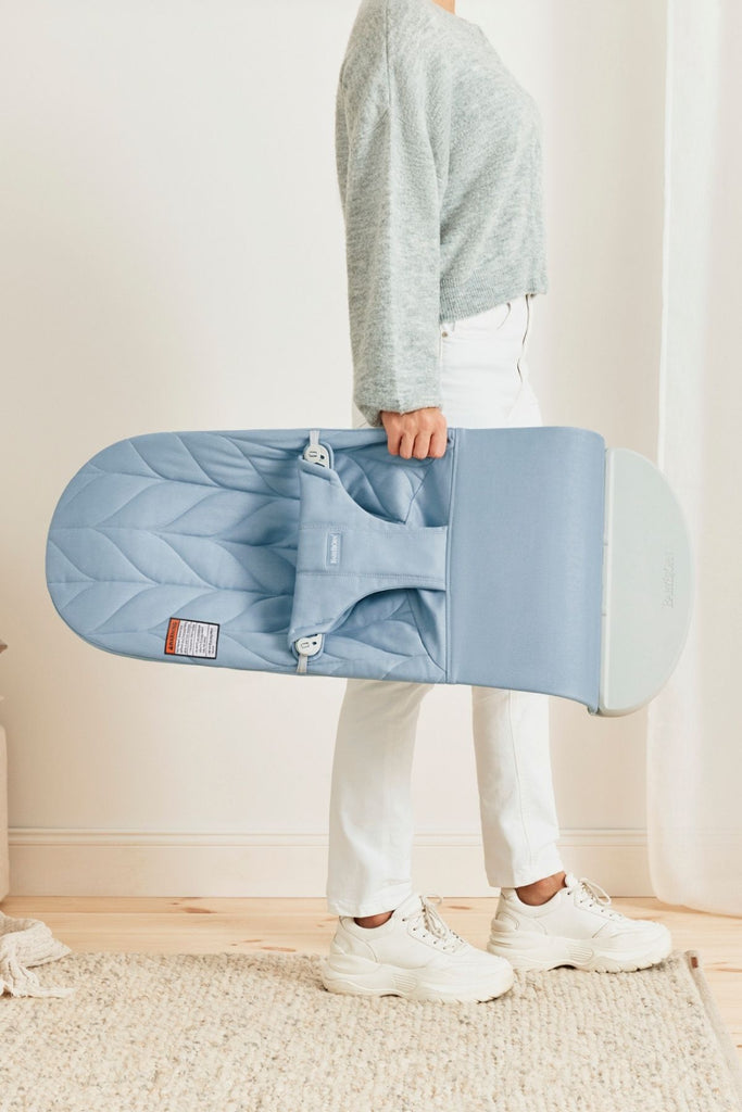 Rooted in Swedish design and a family-first ethos, BabyBjörn crafts intuitive, durable essentials that nurture the bond between parent and child while celebrating the joy of early moments. The Bouncer Bliss Petal Quilt in Woven Blue is a thoughtfully designed baby seat that combines soothing motion with ergonomic comfort. Its natural rocking movement, powered entirely by your baby’s own motion, helps develop balance and motor skills, while the soft quilted fabric cradles your little one in gentle support from newborn to toddler years.