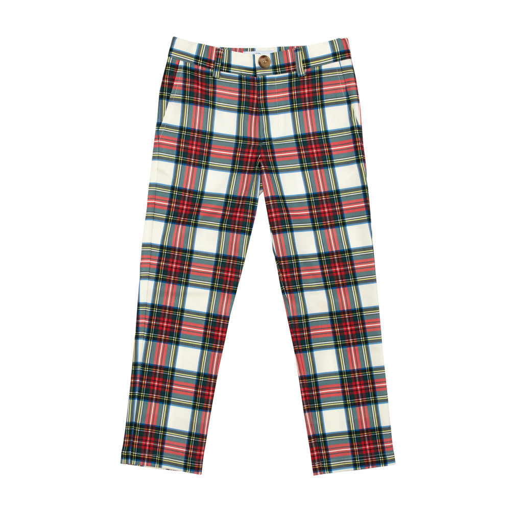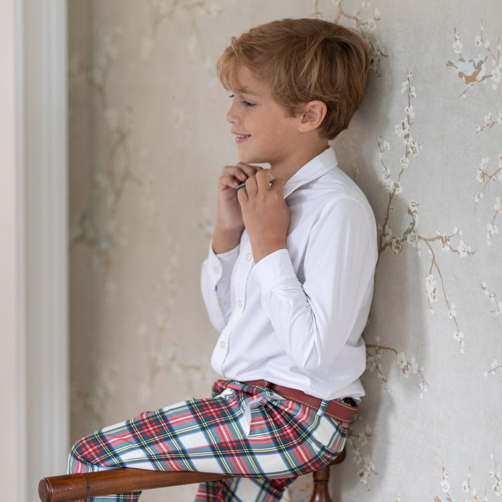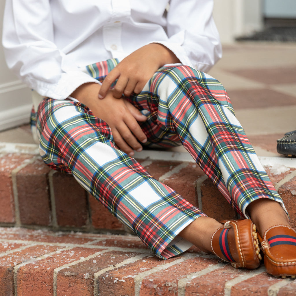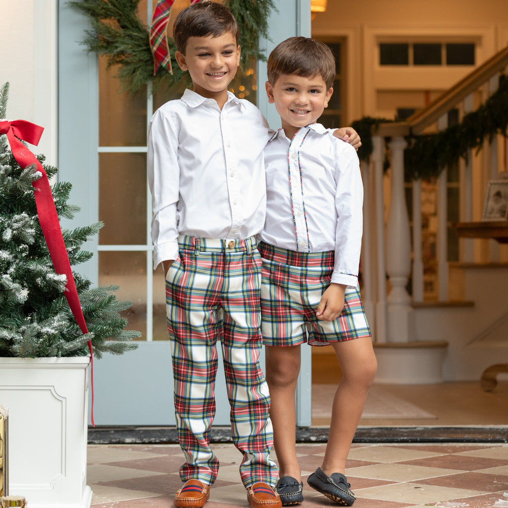 A celebration of the spirit of boyhood, the updated classics from Henry Duvall are curious, imaginative, and sweet. Full of character and playful details, these are easy-to-care-for clothes that families will love. The Bradford Trousers in Townsend Tartan return for the holiday season in a timeless red-and-green plaid that embodies festive tradition. Designed with older boys in mind, this tailored style combines polish with practicality—featuring a flat front, classic fit, and soft structure that ensures both comfort and refinement. From family gatherings to church services and school celebrations, these trousers bring effortless charm to every occasion.