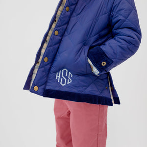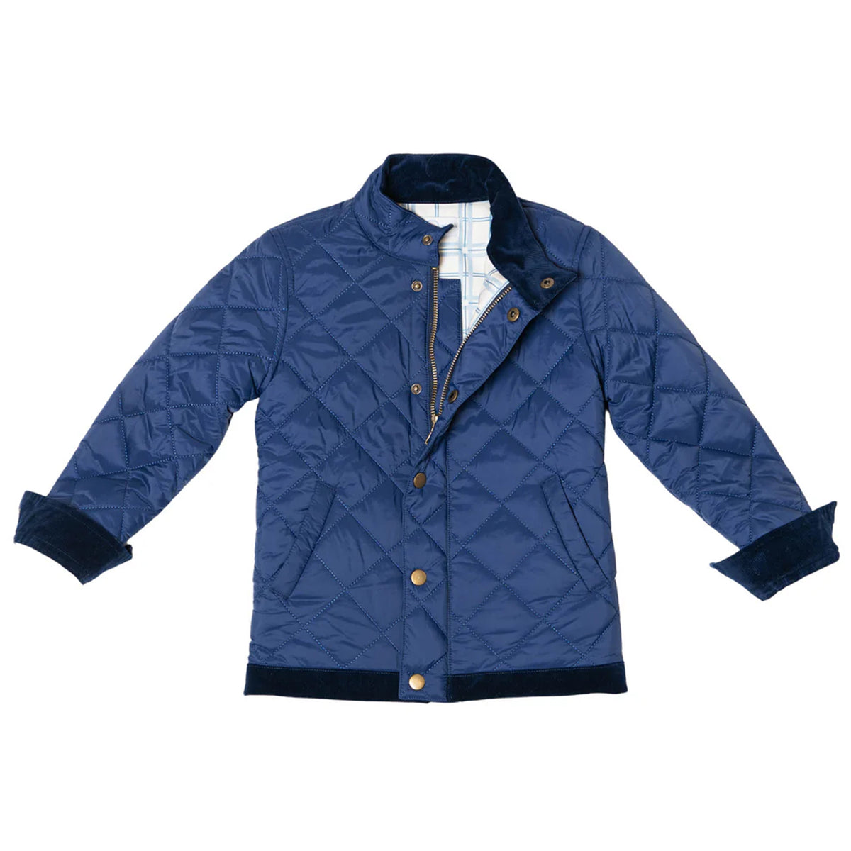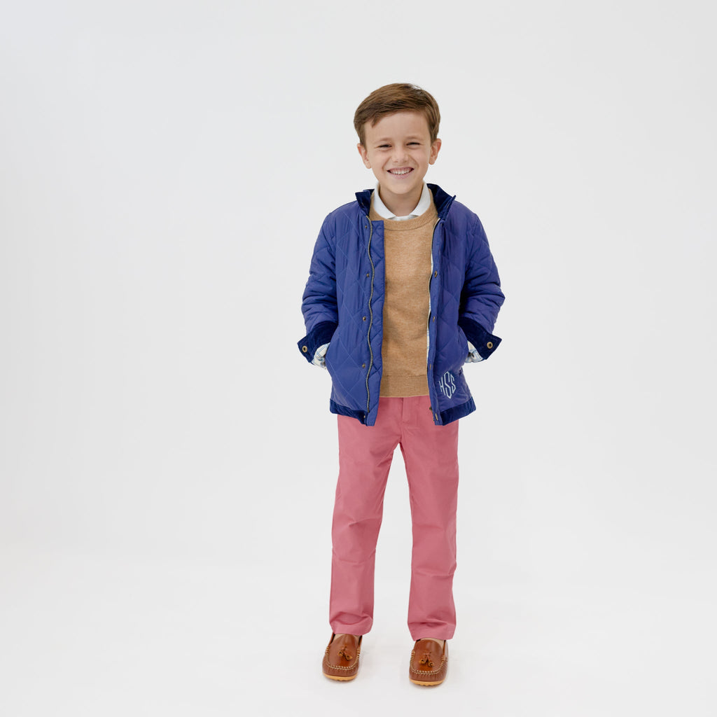 A celebration of the spirit of childhood, the updated classics from Henry Duvall are curious, imaginative, and sweet. Full of character and playful details, these are easy to care for clothes that boys will love. The Bradley Barn Jacket in Narragansett Navy is the ideal medium weight quilted coat to keep him warm on cool fall days and layer with sweaters in the winter. It is classic, preppy perfection and can be styled with all fall and winter looks.