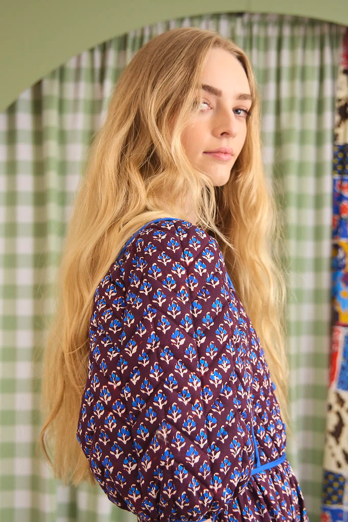Hunter Bell strives to spark joy and inspiration with clothing that empowers women to embrace their personal style. The New York City–based brand is all about fashion-forward, fun looks, designed with detailed craftsmanship and exceptional wearability. The Brenner Dress in Autumn Fleur Fig is a beloved HB silhouette reimagined for the season. Defined by its intricate quilted details, this standout design features a button-front placket with mini quilting across the bodice and reverse contrast trim throughout. Larger quilting on the sleeves and skirt adds texture and dimension, giving Brenner its signature charm. A true fall favorite, it’s a timeless piece with modern personality.