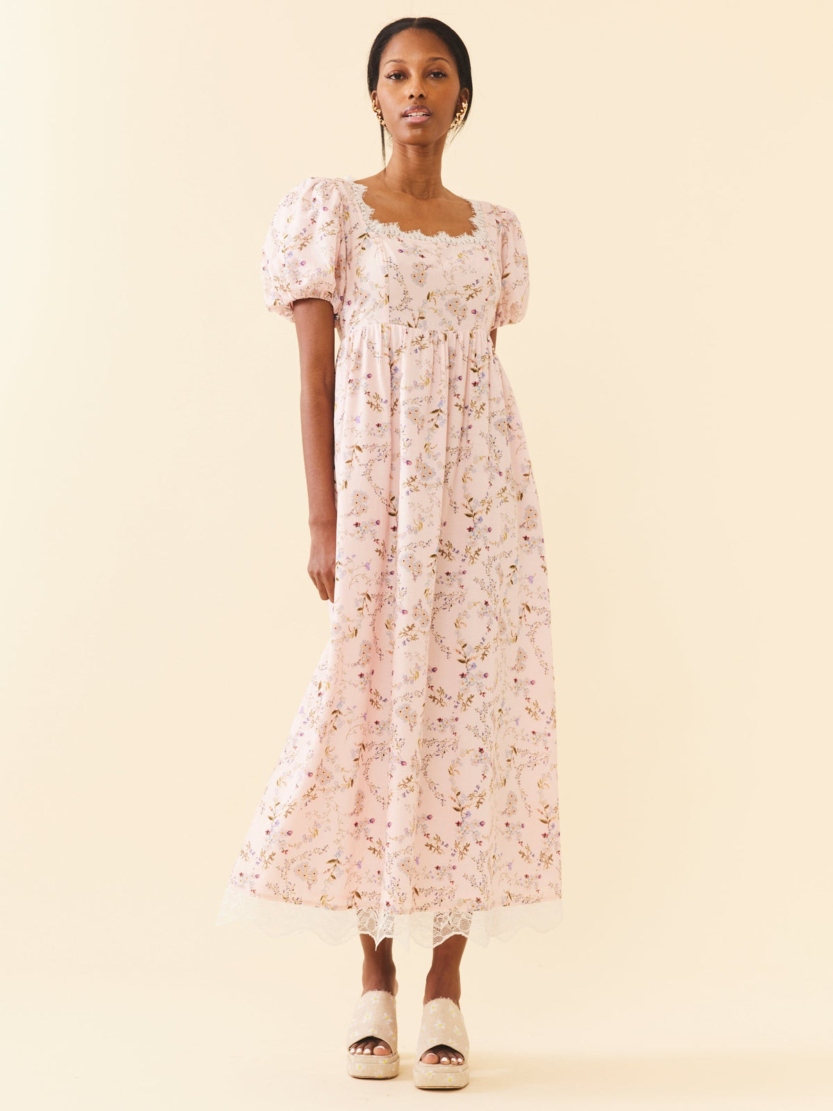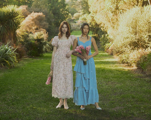 Tomboy looks, girly-girl styles, and an always fashionable approach define Eddy’s aesthetic. With a focus on bold and feminine silhouettes, Eddy dresses and tops pair elevated California bohemian with global inspiration; these are clothes designed to make you feel good inside and out. The Bridgerton Maxi brings Regency-era romance with a modern twist. This flowing dress features an effortless empire waist silhouette, blending timeless romance with modern ease. Delicate crochet lace details and a soft blush floral print create an ethereal, feminine feel—graceful, effortless, and undeniably enchanting.