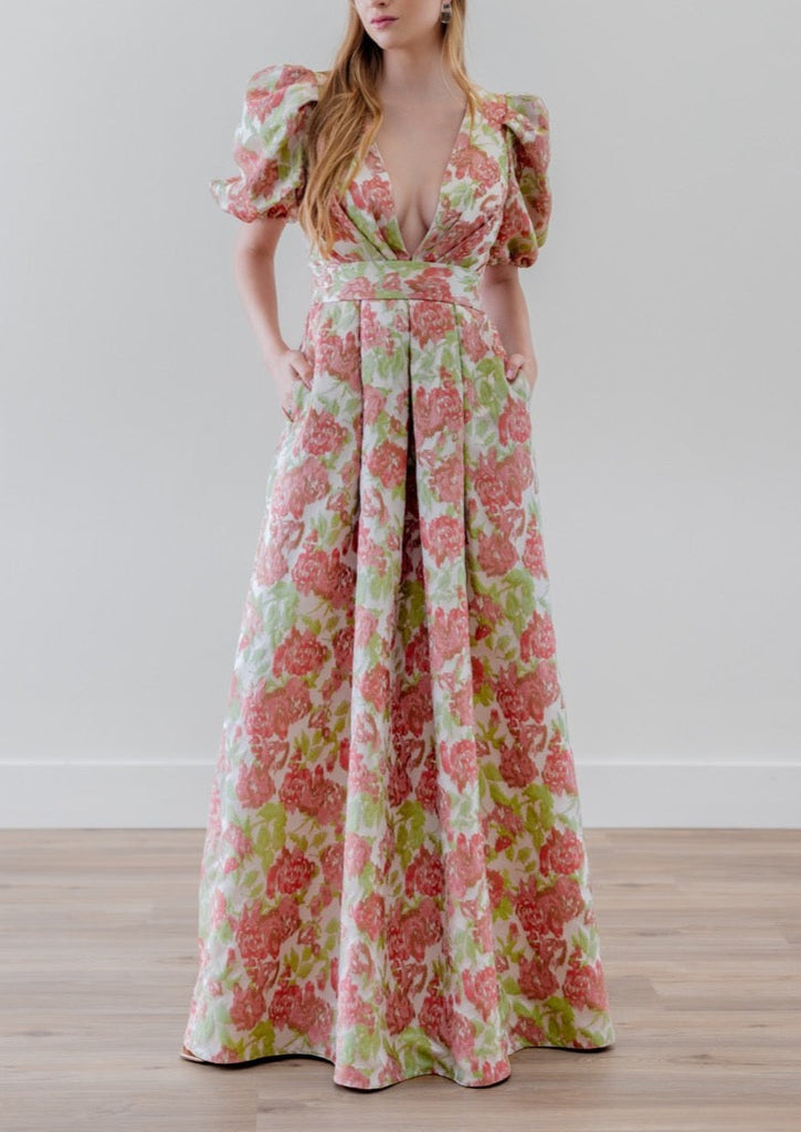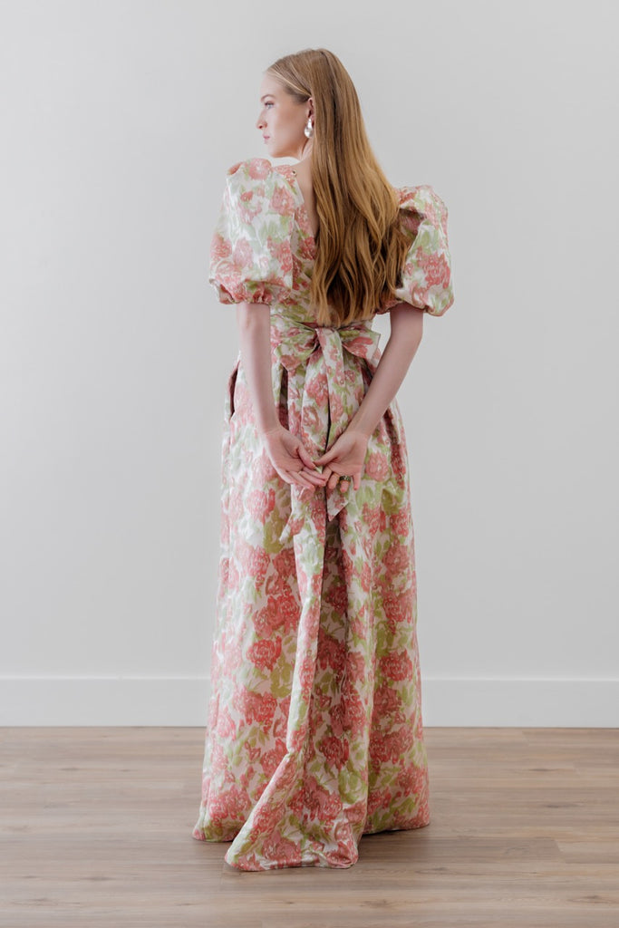 The magic in By Watters—a family-run business of designers, seamstresses, and pattern makers—is understanding how the wants and needs of brides evolve. Embracing drama, versatility, and individuality, By Watters makes dresses for the brides and bridesmaids you want to be. A statement-making, made-to-order dress, the Bungalow features a bold neckline perfectly balanced with puff sleeves and a full-length, pleated skirt. Delicate draping on the back creates an ultra-flattering silhouette, finished off with a self-tie sash to create a fun bow moment.