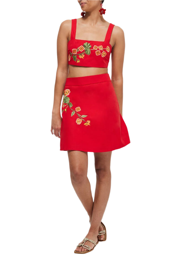 The name Fanm Mon is taken from a Haitian phrase meaning “mountain woman,” reflecting both the founder’s heritage and the spirit of their clothing. Nature’s bounty, fairytale silhouettes, and exploration come together in dresses of outstanding quality, which hold a classic place, yet defy expectations. Bold and feminine, the Burcu Skirt Set is a striking celebration of craftsmanship. Delicate cherry blossom-inspired embroidery weaves across the cropped bralette-style top and mini skirt, creating a look that’s both playful and refined.
