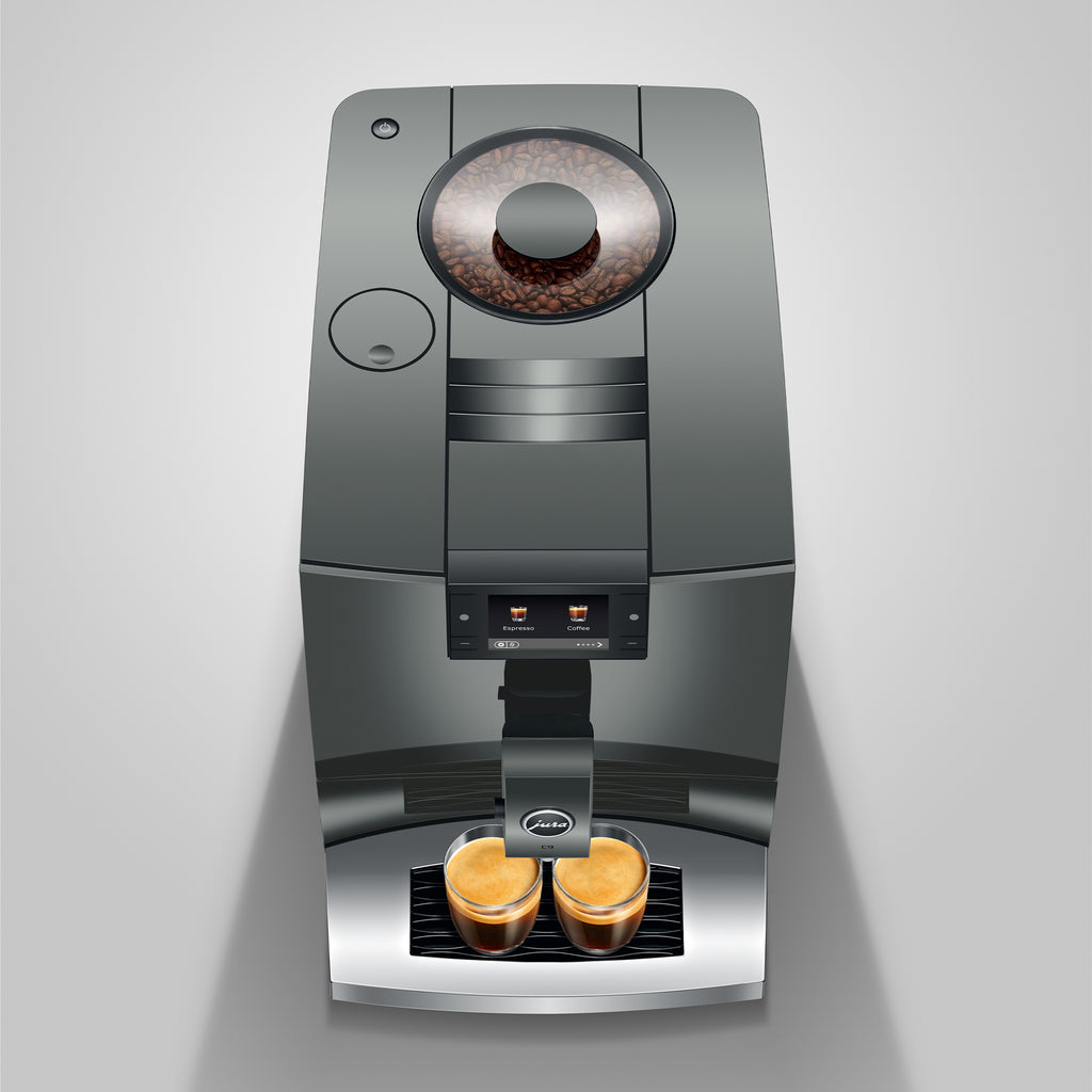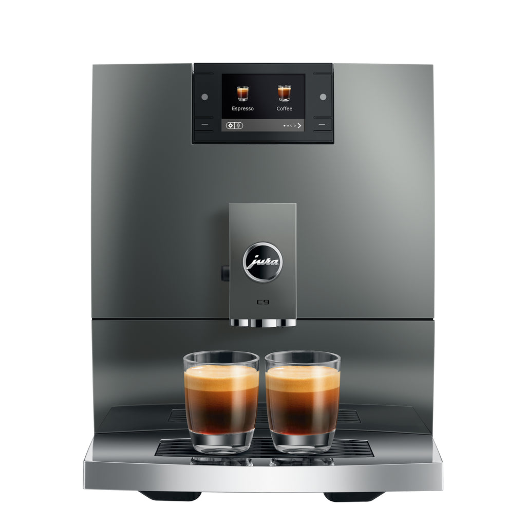 The C9 Fully Automatic Coffee Machine in Piano Inox delivers a wide range of coffee specialties using freshly ground beans for optimal aroma and flavor. Designed for versatility, it prepares 17 drinks—from classic espresso to flat white, cortado, and macchiato—at the touch of a button. Featuring both Hot Brew and Light Brew processes, it offers two distinct brewing experiences, with Light Brew crafted at a lower temperature for immediate enjoyment. A full-size brewing unit, advanced Pulse Extraction Process (P.E.P.®), and Professional Aroma Grinder ensure exceptional coffee quality, while the sleek, compact design brings a refined presence to any kitchen or workspace.