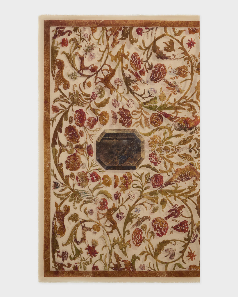 Inspired by the pages of Cabana—a magazine for a new generation of globetrotters—Casa Cabana’s homewares both explore and expand the worlds we share with our interiors. Designed in-house and handcrafted by artisans the world over, each piece feels unique, collectible, and at once part of your home. The Terracotta Collection is a stunning ode to Italy's visual identity, defined by the rich, earthy tones of the country’s natural landscape, its celebrated terracotta rooftops, and sunbaked joie de vivre. The Cabana Pietra Dura Inspired Wool & Silk Scarf in Ivory is crafted from a luxurious blend of wool and silk, featuring an intricate design inspired by classic pietra dura motifs and the decorative style of Renzo Mongiardino. With its warm terracotta tones, soft texture, and refined pattern, this timeless accessory brings effortless elegance to every season.