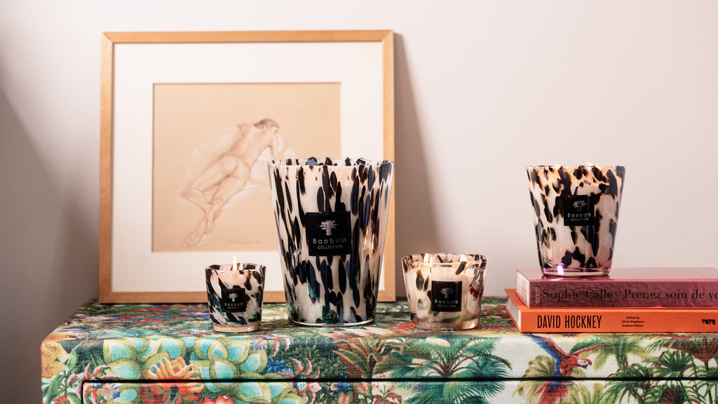 The Baobab Collection Max 10 Black Pearls Candle is a study in contrast and elegance. Its hand-blown glass vessel, marbled in striking black and white, evokes the luster of Tahitian pearls. With an alluring scent that combines the depth of black rose and the spice of ginger, it fills the home with an atmosphere of warmth and refinement.