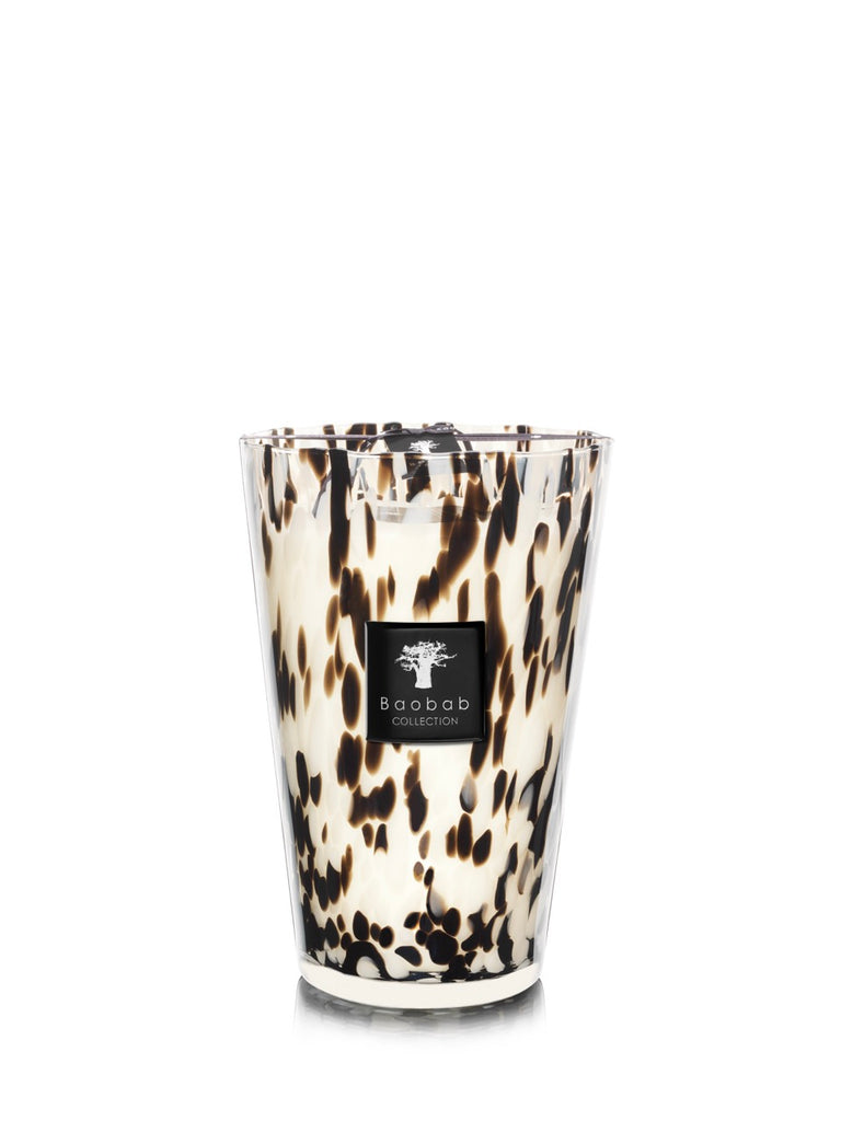 The Baobab Collection Max 35 Black Pearls Candle is an icon of bold elegance and timeless allure. Inspired by the rare beauty of Tahitian black pearls, its hand-blown glass vessel shimmers with contrasting black and iridescent white hues. The fragrance—a sophisticated balance of black rose and ginger—adds warmth and depth, filling the room with a luxurious, sensual energy.