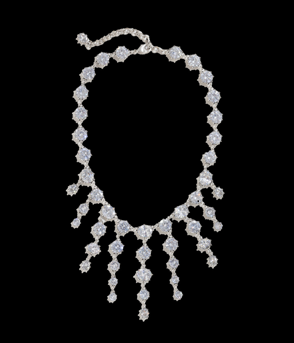 Loren Barham founded her jewelry line in 2005 as a means to reconnect with the vintage jewels that inspired her as a child. Today, the dynamic, artistic, original pieces of Loren Hope, designed at their flagship store in Newport, Rhode Island, serve as a bridge between nostalgia and thoroughly modern women everywhere. The Chase Statement Necklace is an ode to early 2000s maximalism, unapologetically bold and designed to turn heads. With its gleaming silver ox finish and shimmering CZ stones, this statement piece brings high-impact glamour to cocktail attire and a striking edge to a simple tee and jeans.
