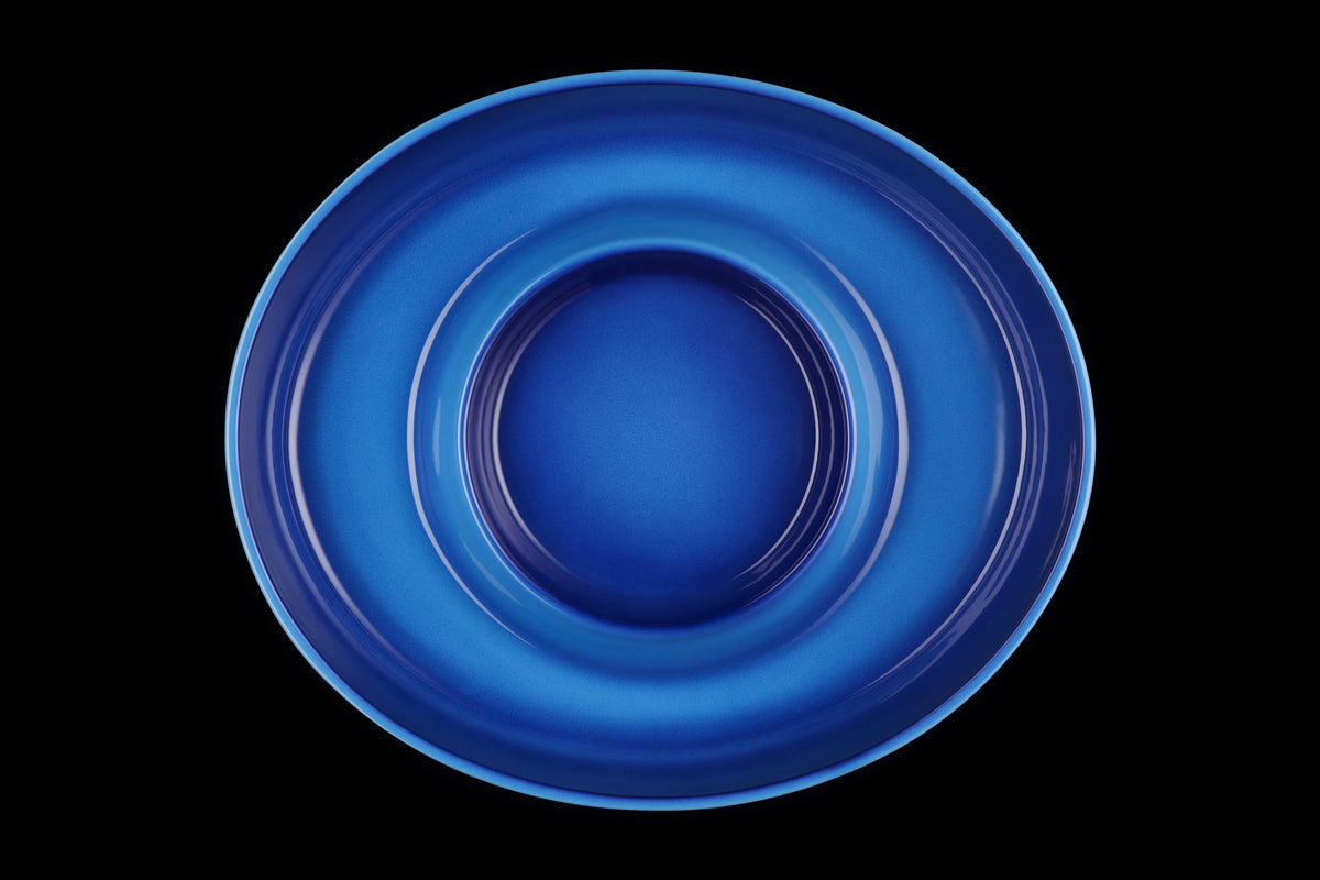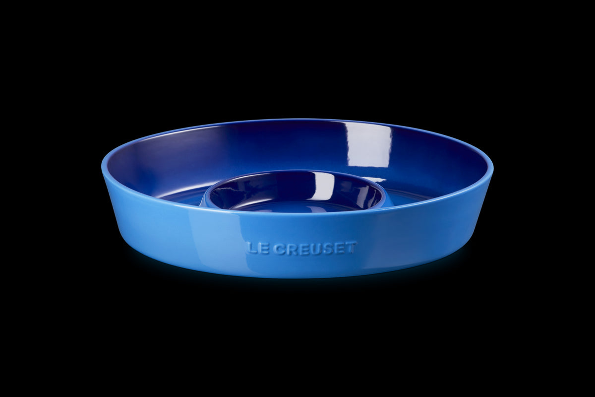 Recognized for its strength and durability, as well as its beauty and quality, Le Creuset produced the first enameled cast iron cookware nearly a century ago. A tradition of maintaining the finest culinary craftsmanship, combined with the latest innovations, means Le Creuset is known for blending classic form with real function and that it’s made for home cooks and professional chefs alike. Add sophistication and versatility to entertaining with the Signature Oval Chip & Dip Platter in Marseille. Featuring a spacious outer section for chips, fruit, vegetables, or oysters on ice, and a central bowl ideal for dips, garnishes, or even a 24 oz. Mini Cocotte, this platter brings elevated presentation to any gathering.