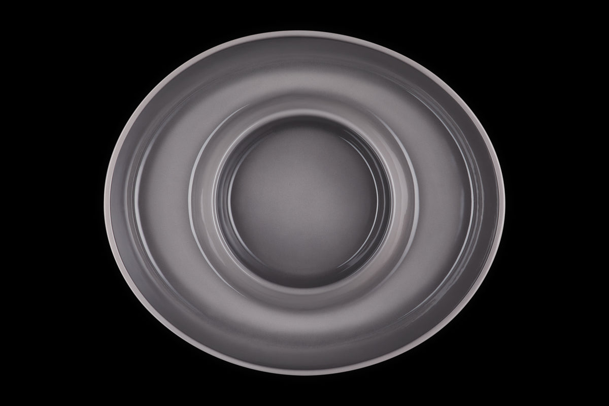 Recognized for its strength and durability, as well as its beauty and quality, Le Creuset produced the first enameled cast iron cookware nearly a century ago. A tradition of maintaining the finest culinary craftsmanship, combined with the latest innovations, means Le Creuset is known for blending classic form with real function and that it’s made for home cooks and professional chefs alike. Add sophistication and versatility to entertaining with the Signature Oval Chip & Dip Platter in Oyster. Featuring a spacious outer section for chips, fruit, vegetables, or oysters on ice, and a central bowl ideal for dips, garnishes, or even a 24 oz. Mini Cocotte, this platter brings elevated presentation to any gathering.