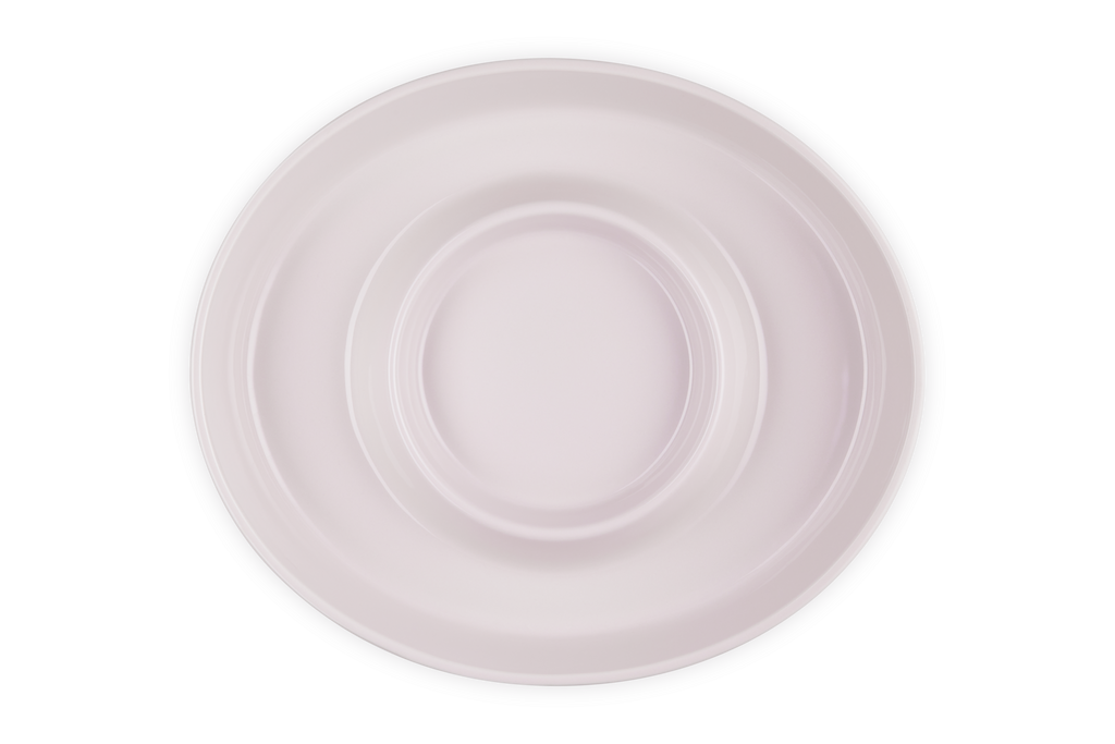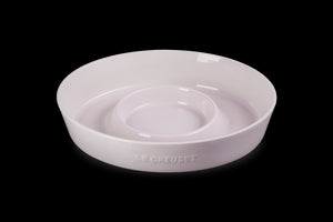 Recognized for its strength and durability, as well as its beauty and quality, Le Creuset produced the first enameled cast iron cookware nearly a century ago. A tradition of maintaining the finest culinary craftsmanship, combined with the latest innovations, means Le Creuset is known for blending classic form with real function and that it’s made for home cooks and professional chefs alike. Add sophistication and versatility to entertaining with the Signature Oval Chip & Dip Platter in Shallot. Featuring a spacious outer section for chips, fruit, vegetables, or oysters on ice, and a central bowl ideal for dips, garnishes, or even a 24 oz. Mini Cocotte, this platter brings elevated presentation to any gathering.