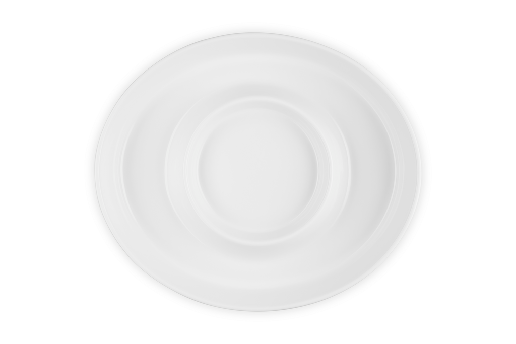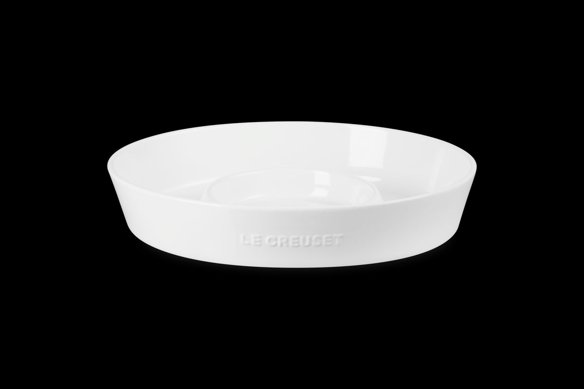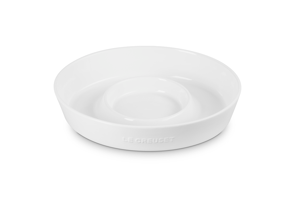 Recognized for its strength and durability, as well as its beauty and quality, Le Creuset produced the first enameled cast iron cookware nearly a century ago. A tradition of maintaining the finest culinary craftsmanship, combined with the latest innovations, means Le Creuset is known for blending classic form with real function and that it’s made for home cooks and professional chefs alike. Add sophistication and versatility to entertaining with the Signature Oval Chip & Dip Platter in White. Featuring a spacious outer section for chips, fruit, vegetables, or oysters on ice, and a central bowl ideal for dips, garnishes, or even a 24 oz. Mini Cocotte, this platter brings elevated presentation to any gathering.