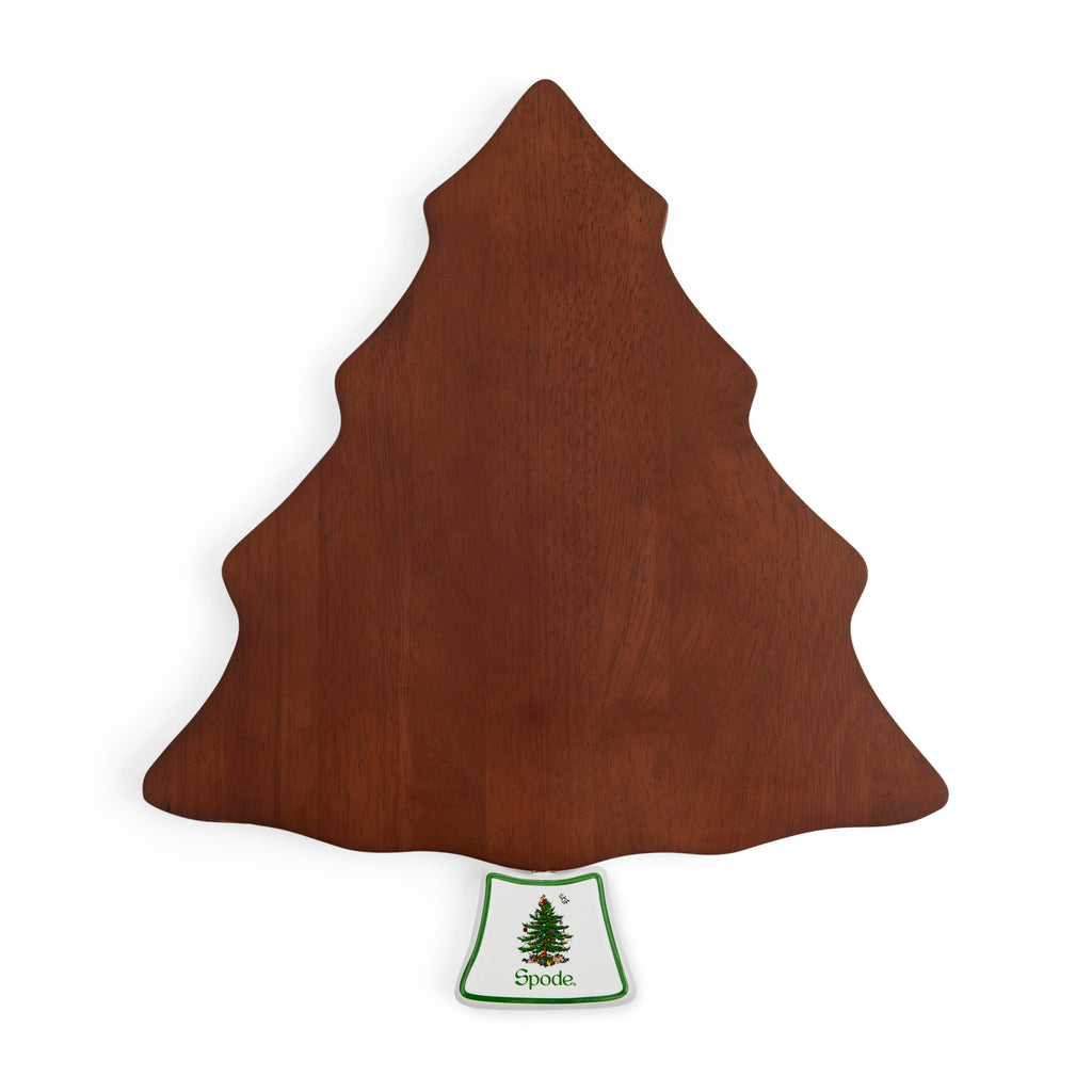 Set includes one porcelain cheese board and one stainless steel spreader with porcelain handle. Features Spode’s Christmas Tree design.