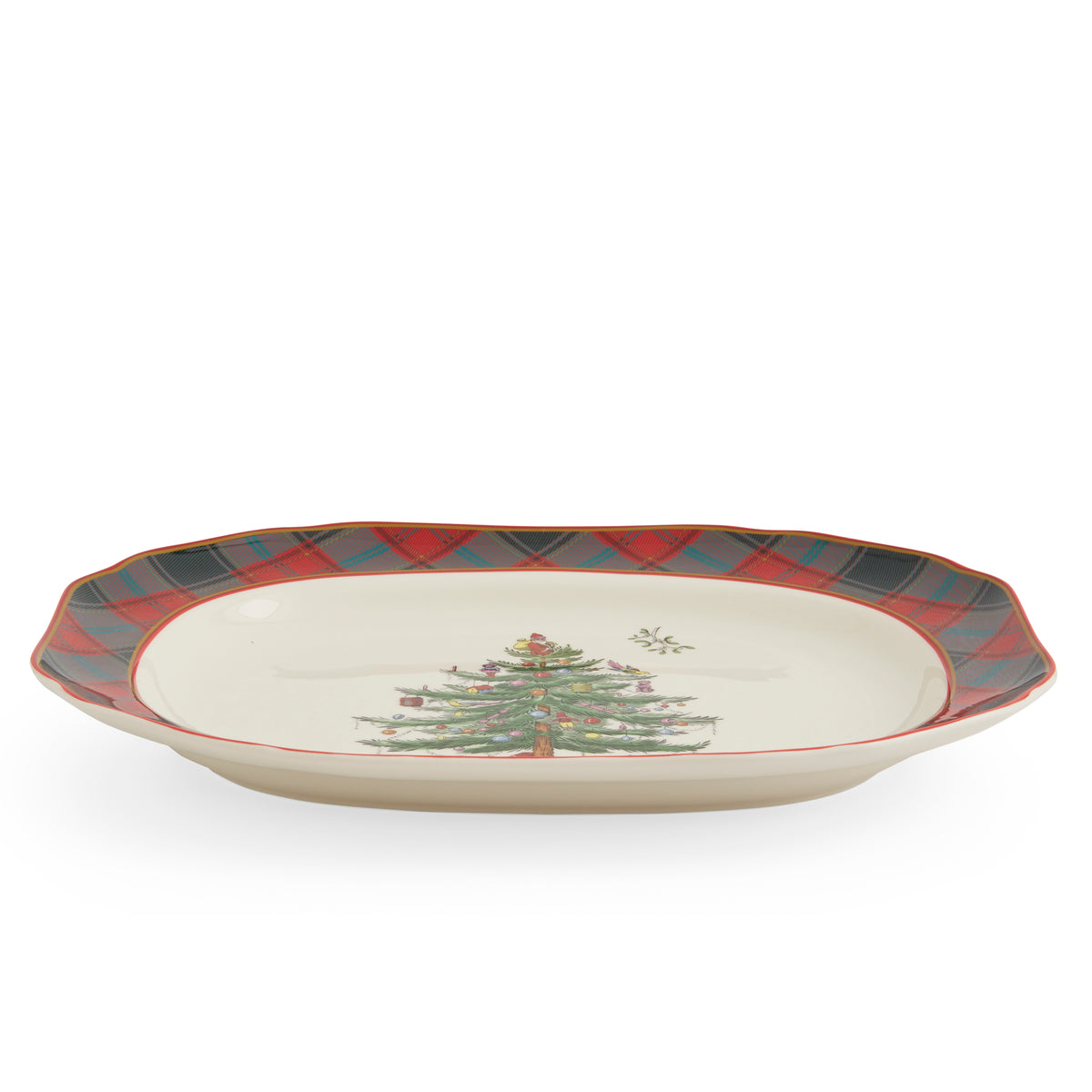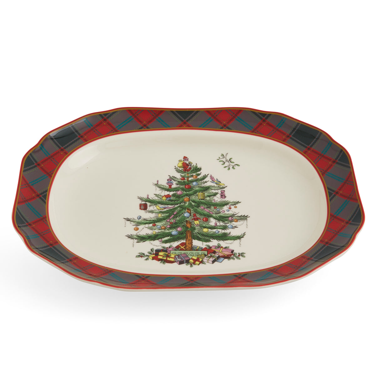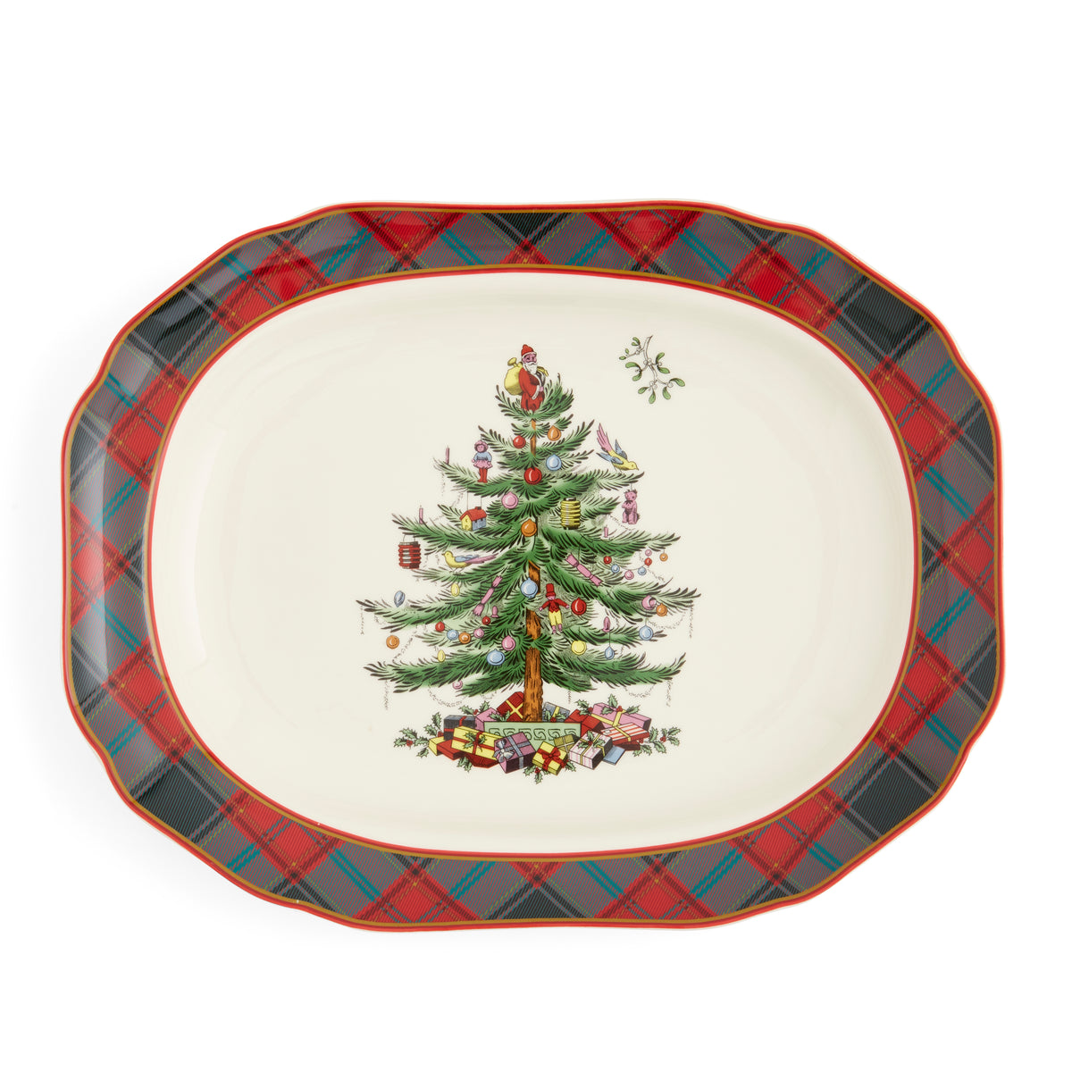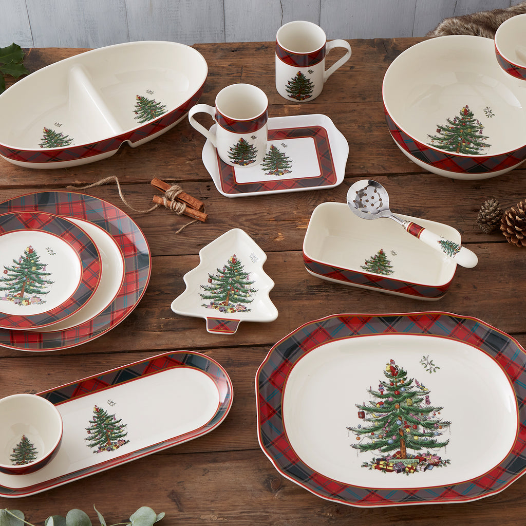 Founded by Josiah Spode in 1770, Spode has been producing the finest ceramics and celebrated designs in Stoke-on-Trent, England for 250 years. Spode is the authority on great British style bringing heritage style to modern day life. The Christmas Tree Tartan 14" Rectangular Platter makes a beautiful statement on the holiday table, ideal for serving roasts, hors d’oeuvres, or festive desserts—all framed by the classic tree motif and bold tartan border.