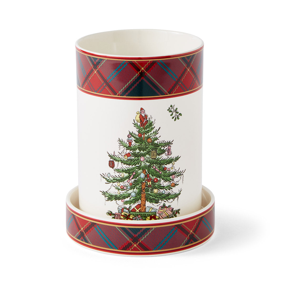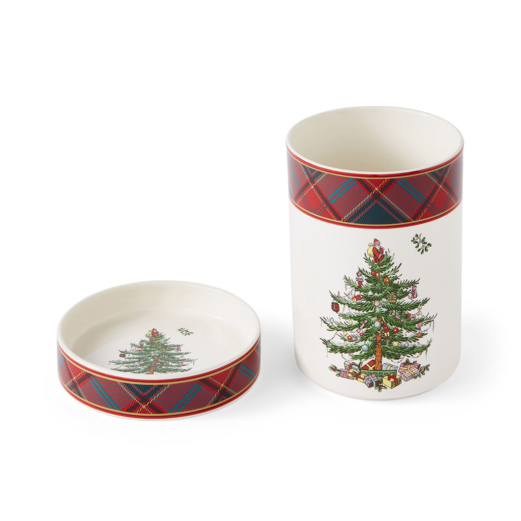 Set of 2. Fine porcelain. Features Spode’s Christmas Tree Tartan design.