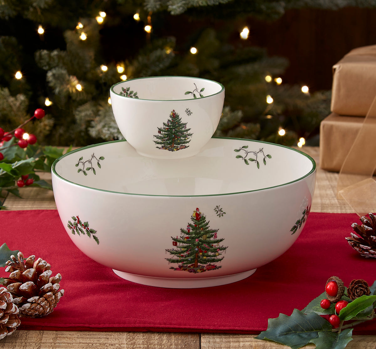 Founded by Josiah Spode in 1770, Spode has been producing the finest ceramics and celebrated designs in Stoke-on-Trent, England for 250 years. Spode is the authority on great British style bringing heritage style to modern day life. The Christmas Tree Tiered Chip & Dip dish brings festive elegance and visual interest to holiday entertaining, combining Spode’s iconic pattern with a functional, space-saving design.