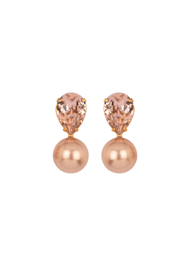 “Everything has a story to tell,” says Jennifer Behr, the founder of her namesake luxury hair accessory brand that has blossomed into one of New York City’s foremost ateliers for jewelry, as well as bridal. In every crystal, pearl, and ribbon, you’ll find the utmost quality and a sense of romance, as each piece reveals a modern interpretation of centuries-old regalia. The Cimone Earrings in Rose reinterpret the classic drop earring with feminine charm and refined simplicity. Handcrafted in New York, each pair features pear-cut Austrian crystals paired with luminous crystal-pearl drops, their delicate scale and blush hue offering timeless versatility for any occasion.