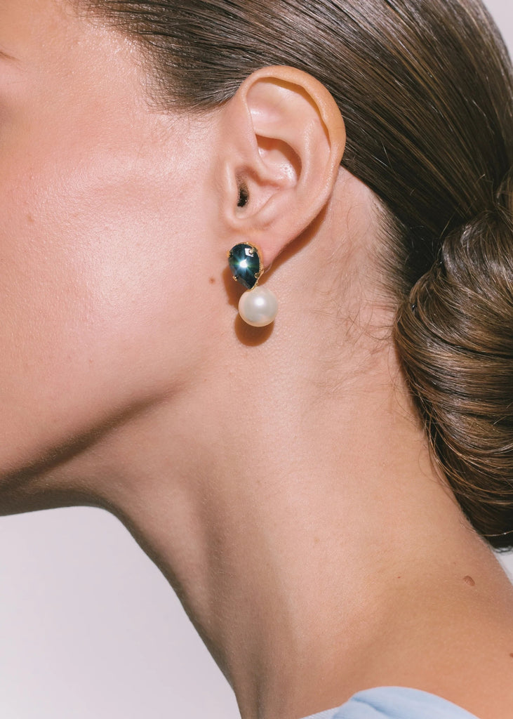 “Everything has a story to tell,” says Jennifer Behr, the founder of her namesake luxury hair accessory brand that has blossomed into one of New York City’s foremost ateliers for jewelry, as well as bridal. In every crystal, pearl, and ribbon, you’ll find the utmost quality and a sense of romance, as each piece reveals a modern interpretation of centuries-old regalia. The Cimone Earrings in Sapphire offer an elevated update to the timeless drop silhouette, pairing pear-cut Austrian crystals with luminous crystal-pearl drops. Handcrafted in New York, this petite yet striking design brings understated sophistication to any ensemble.