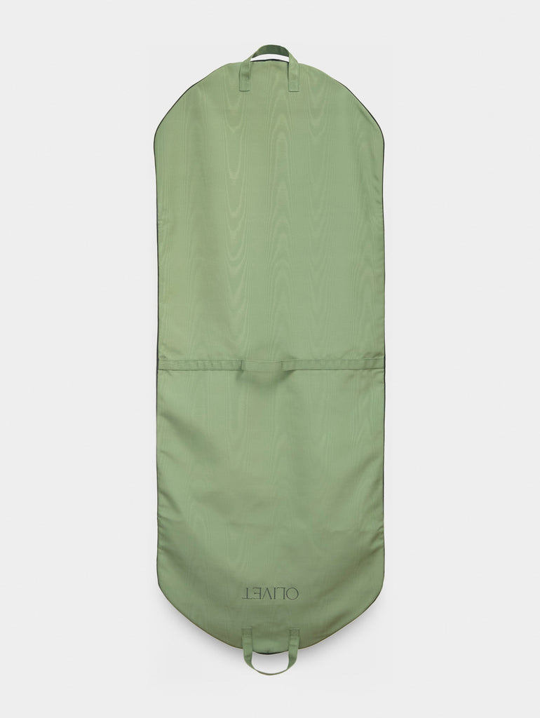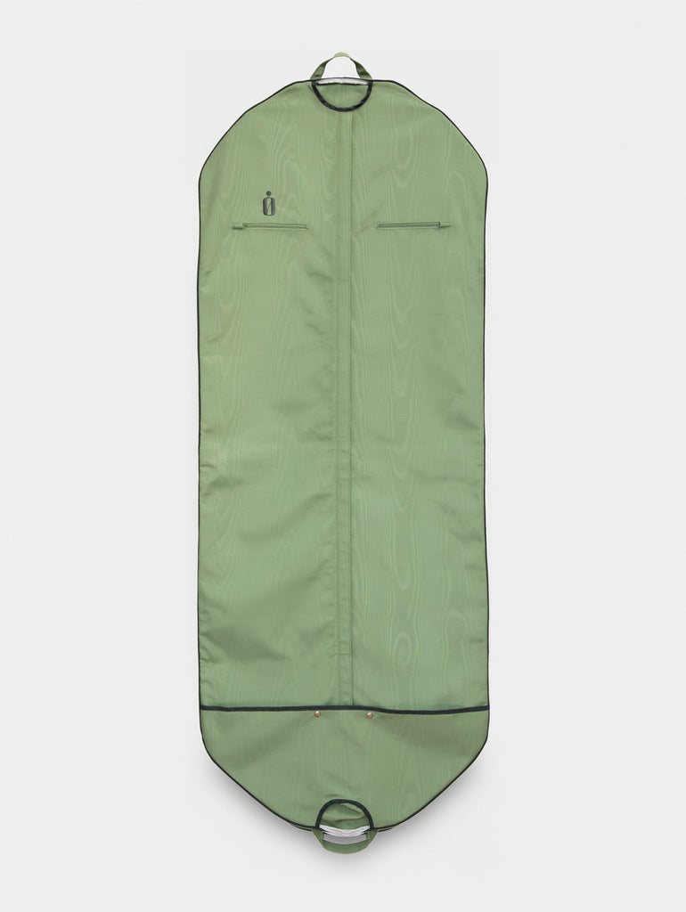 A new season calls for a new hue—the Classic Bag in Moiré Juniper brings fresh sophistication to travel. Crafted from signature poly moiré with verdigris embroidery and piping, it blends timeless design with modern polish. Extra-long to accommodate formalwear, it includes two interior pockets and folds seamlessly for easy carrying. Custom embroidery available over the right interior pocket.