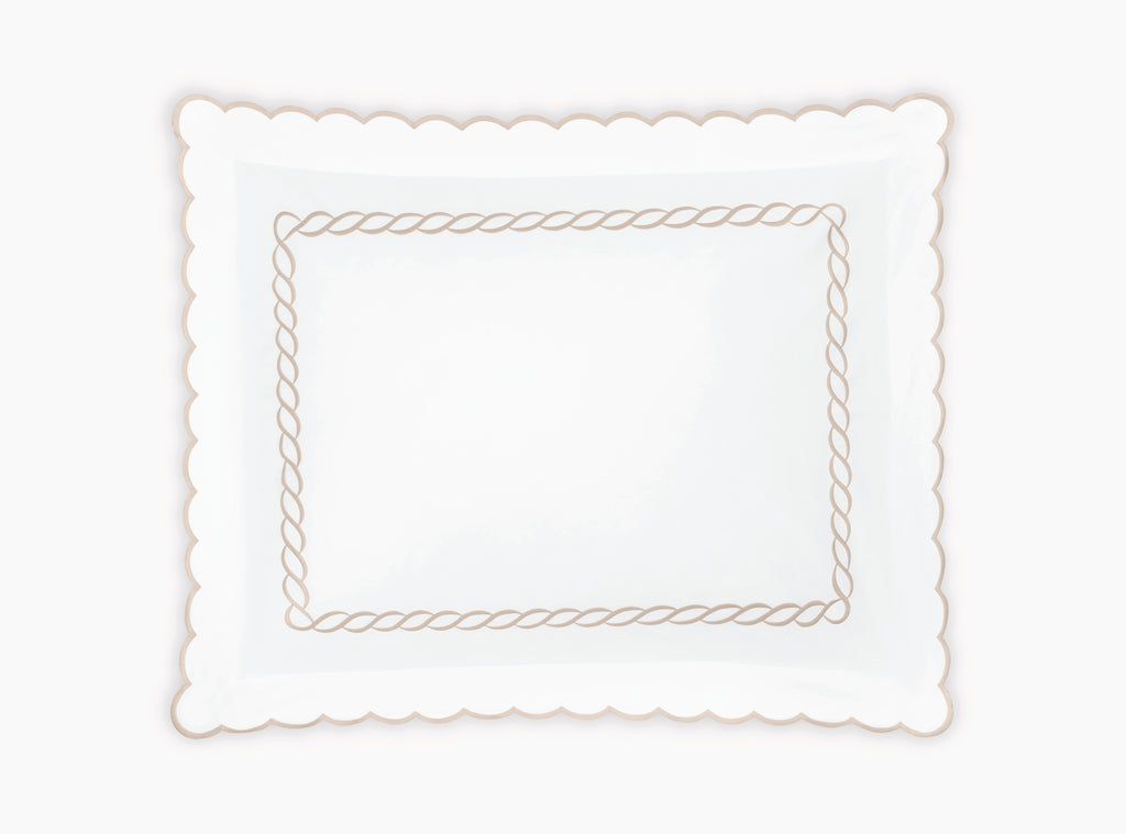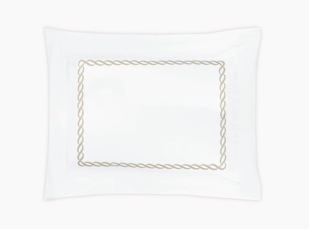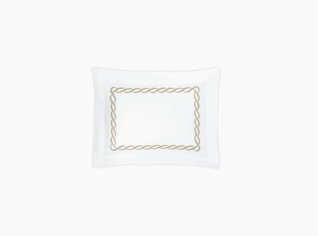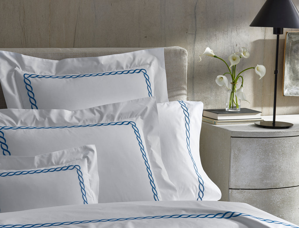 For nearly 100 years and three generations, Matouk has handcrafted luxury linens from the world’s finest materials. Their dedicated artisans in Fall River, Massachusetts are committed to creating the highest quality, most-loved bed, bath, and table linens for your home. The Classic Chain Collection offers an updated take on an iconic Greek motif. Embroidered on crisp, 520 thread count Ceylon cotton percale, this time-honored design comes in an array of shades and exudes a quintessentially classic appeal.