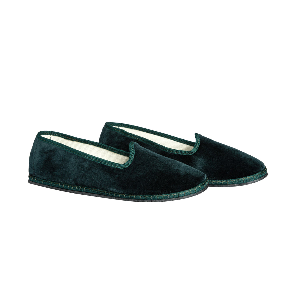 Founded by sisters Viola and Vera Arrivabene Valenti Gonzaga, Vibi Venezia revives the art of the Venetian furlana—the beloved slipper of Italy’s past. Handcrafted by artisans who carry forward generations of shoemaking knowledge, each pair combines fine materials and timeless design for a distinctly elegant expression of heritage and craftsmanship. The Classic in Laguna is a handmade velvet slippers with a rubber sole. Available in green or brown.