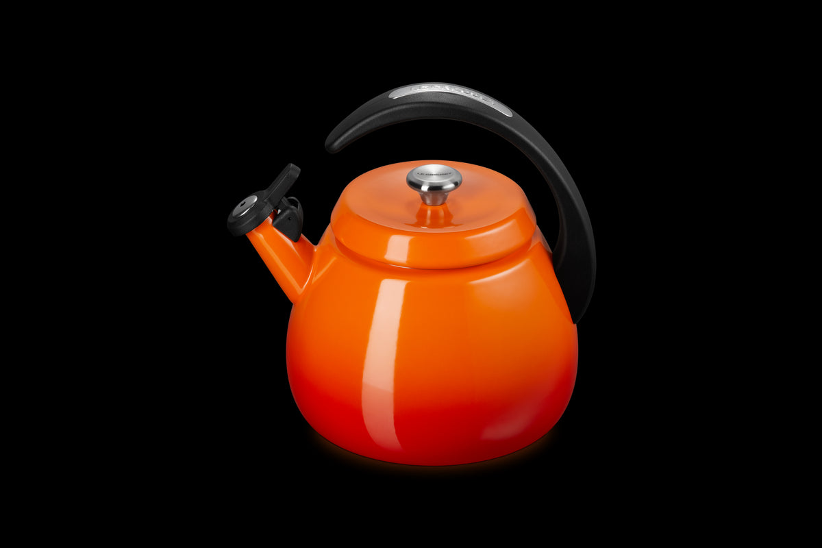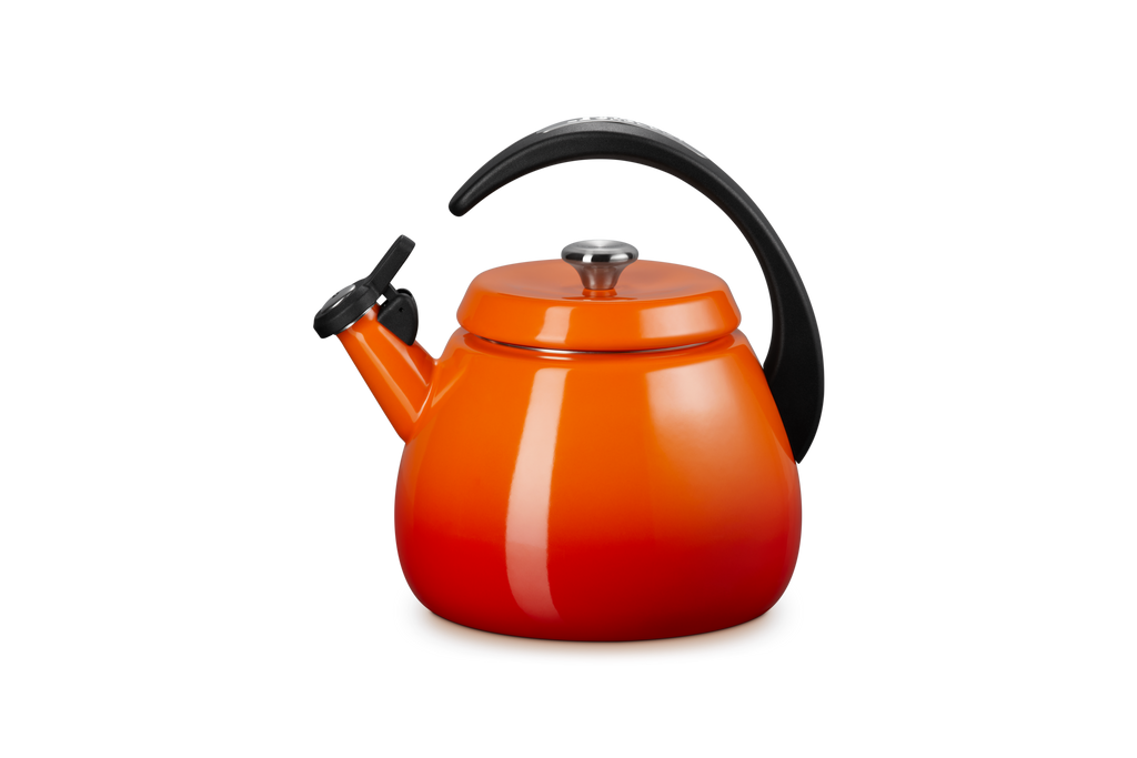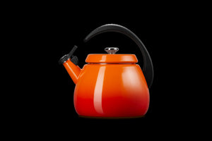 Recognized for its strength and durability, as well as its beauty and quality, Le Creuset produced the first enameled cast iron cookware nearly a century ago. A tradition of maintaining the finest culinary craftsmanship, combined with the latest innovations, means Le Creuset is known for blending classic form with real function and that it’s made for home cooks and professional chefs alike. A modern take on a timeless essential, the Cloche Kettle in Flame is crafted from fast-heating carbon steel with a smooth, glossy enamel finish. Designed with a halo-style handle that stays cool to the touch, it brings elegance and utility to everyday rituals like French press coffee, tea, or oatmeal.