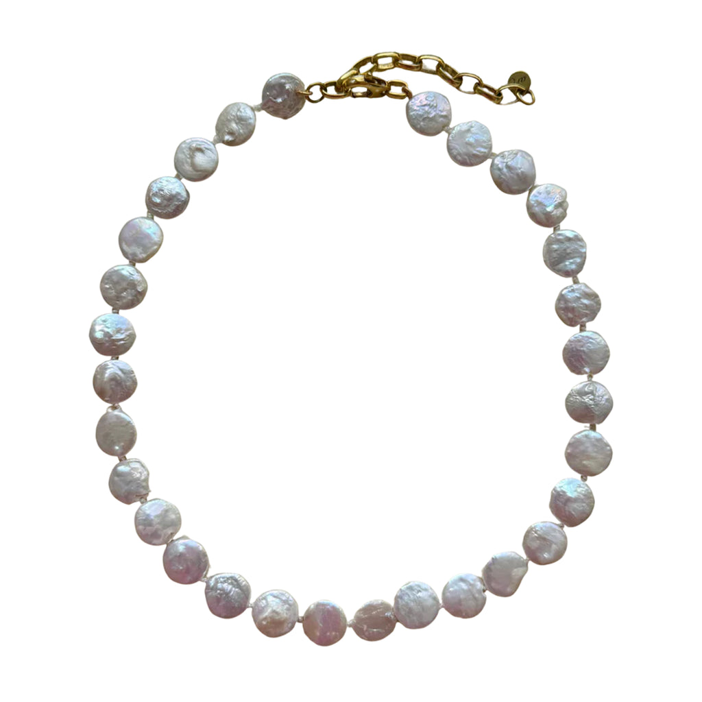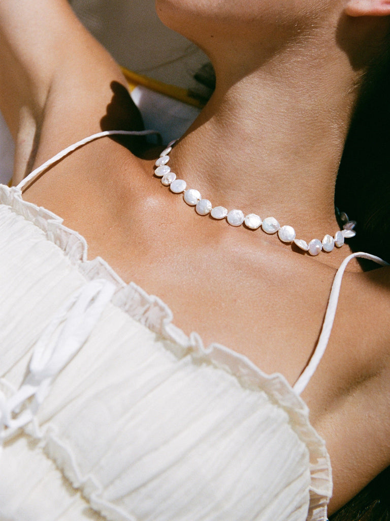 Created by Alice Marcuz was born out of a deep-rooted love for fashion and fine jewelry. After years immersed in the world of style and design in New York City, Alice earned her GIA certification in gemstones, refining her craft and creative vision. Now based in Charleston, South Carolina, she draws inspiration from blending color and texture—infusing every design with an effortless sense of joy. Created by Alice Marcuz is dedicated to bringing playful, stylish, and timeless jewelry to everyday looks. The Mini Coin Pearl Necklace offers a fresh take on classic pearls, featuring dainty semi-precious freshwater coin pearls in a minimal silhouette.