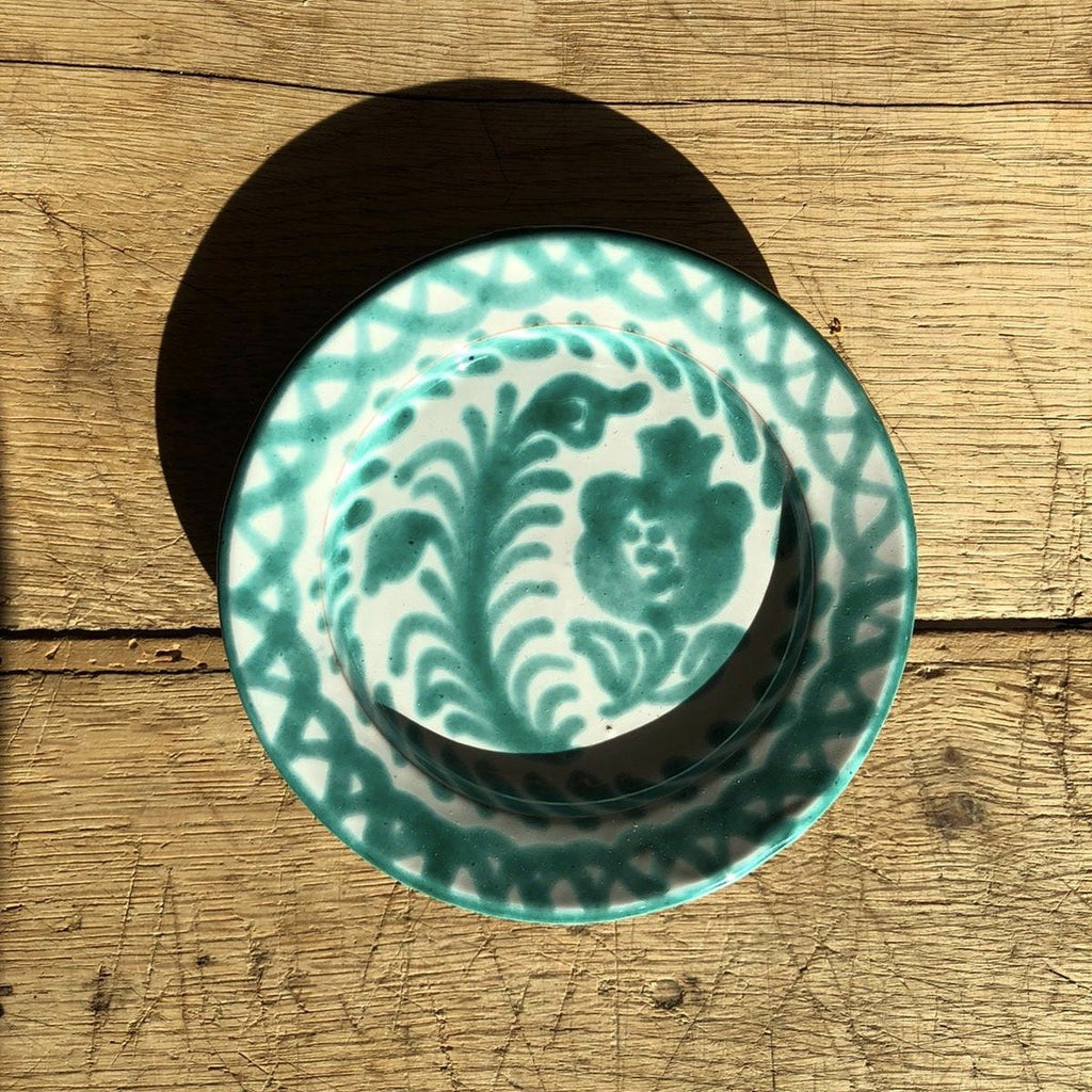 Hand-painted with a traditional Spanish "Lebrillo" design featuring pomegranates, the Casa Verde Mini Plate with Hand-painted Designs is subtly striking and well-suited for dining, table decoration, or as wall decor. (There are two holes on the back that make for easy hanging.) Each Pomelo Casa piece is handmade in Southern Spain by ceramicists who have been using the same techniques for over five centuries and may have a slight variation in pattern as a result. Minor imperfections are not considered flaws but instead add to the authenticity and charm of these beautiful home goods.