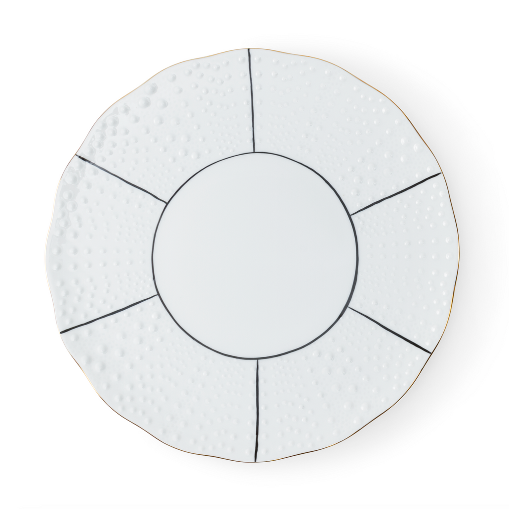 Molecot’s sophistication arrives by way of its founders, three Spanish businesswomen and friends, who sought to augment the art of entertaining with fine tableware. Taking inspiration from trips across the world, fashion, and art, every occasion becomes unique with these pieces’ embrace of both tradition and contemporary style. The Coral series is distinguished by its finesse, wherein the contrast of the scalloped, black edges stand out against its golden border finish. Crafted in Limoges porcelain and hand-painted, the Coral Charger Plate/ Round Platter is ideal for serving larger, family-style items, or acting as the base for other dishes.