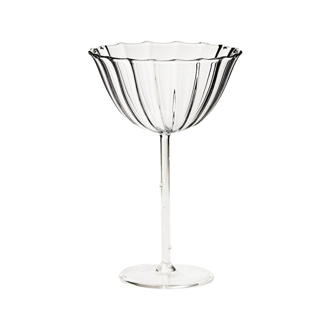 From her studio in New York City, French-American designer Sophie Lou Jacobsen explores the relationship between humans and objects by imbuing each of her unique glass pieces with elements of surprise and delight, creating a visual poetry around the rituals of our everyday. The Cosmo Coupe’s wide brim makes it the ideal shape for cocktails or sparkling wine. With its delicate waves and aroma-releasing brim, it’s a glass worthy of your celebrations.