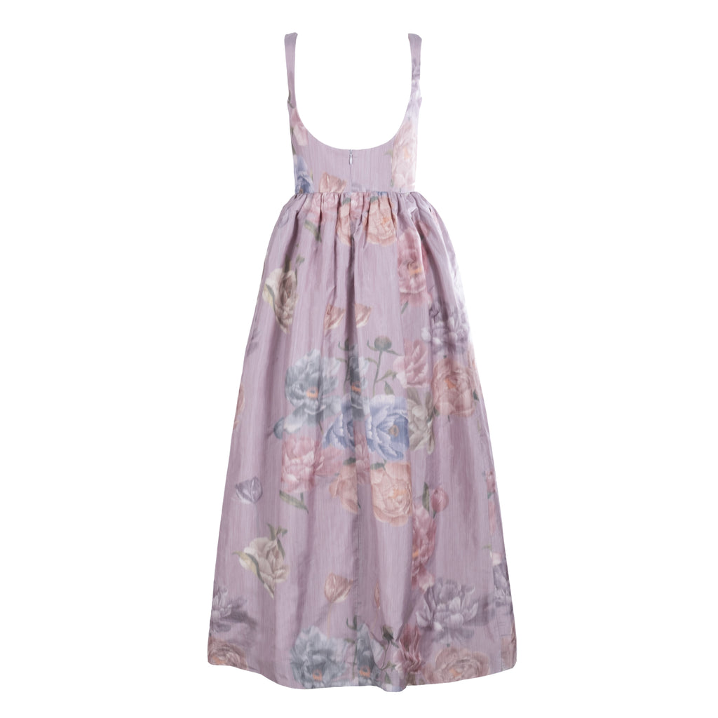 A graduate of the Savannah College of Design, award-winning Alexandra Pijut’s namesake line arrives from her studio in New York, offering luxe ready-to-wear pieces that distinguish themselves between femininity and practicality. Incorporating elements of the designer's childhood, like equestrian tailoring and dancewear, the Coupe Dress in Lilac Floral Taffeta boasts a ballet back-neckline, underbust corset adorned with crystal trim, and a gathered skirt. We love the gorgeous warp print, featuring an inimitable collection of florals.