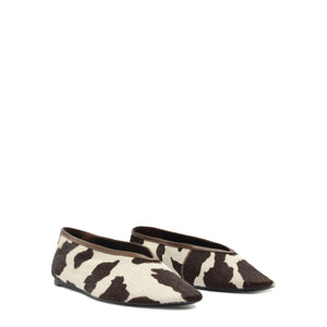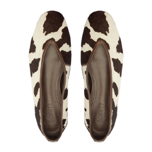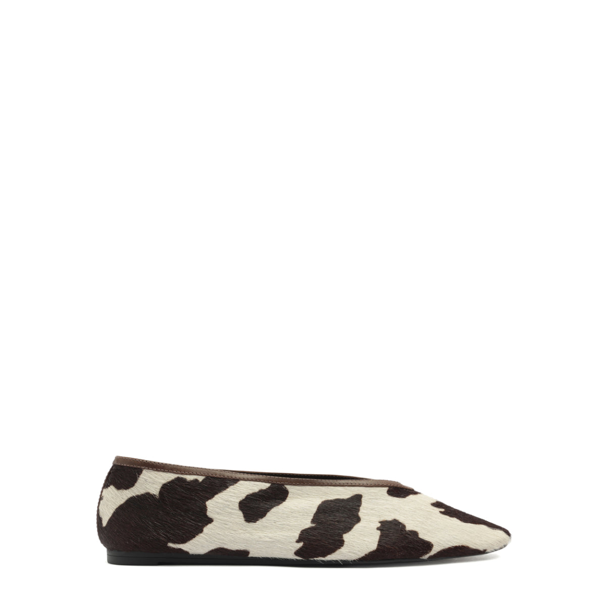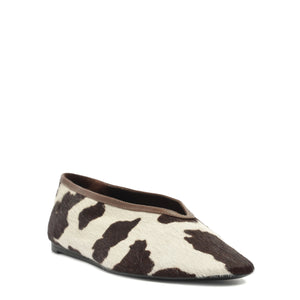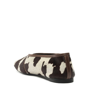 Hair calf upper. Man-made lining. Man-made sole. 0.2" heel height.