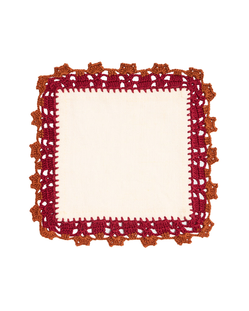 Inspired by the pages of Cabana—a magazine for a new generation of globetrotters—Casa Cabana’s homewares both explore and expand the worlds we share with our interiors. The Crochet Embellished Cocktail Napkins, Set of 6, are crafted from a linen-cotton blend and finished with hand-crocheted edging in a trio of rich tones. With picot and looped detailing, each napkin brings artisanal texture and a refined touch to your entertaining essentials.