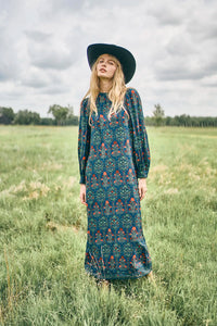 Hunter Bell strives to spark joy and inspiration with clothing that empowers women to embrace their personal style. The New York City–based label is all about fashion-forward, fun designs, crafted with meticulous detail and effortless wearability. The Crosby Dress returns in Midnight Garden, a moody floral print that adds depth to this timeless silhouette. Featuring a softly shirred round neckline, long sleeves with shirred shoulders, and banded cuffs, its relaxed shape balances polish and ease for everyday beauty.