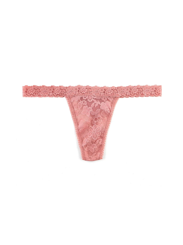 Hanky Panky's signature V-front and V-back waistband revolutionized the world of lingerie 30 years ago and has put an end to panty-lines. Soft and stretchy, Hanky Panky officially makes the World's Most Comfortable Thong. Easy and lightweight, but still there where you need it, this G-string sits between the cheeks without irritating. Crafted in the brand's new Daily Lace™, it gently seals in comfort, giving a flawless finish under clothing.